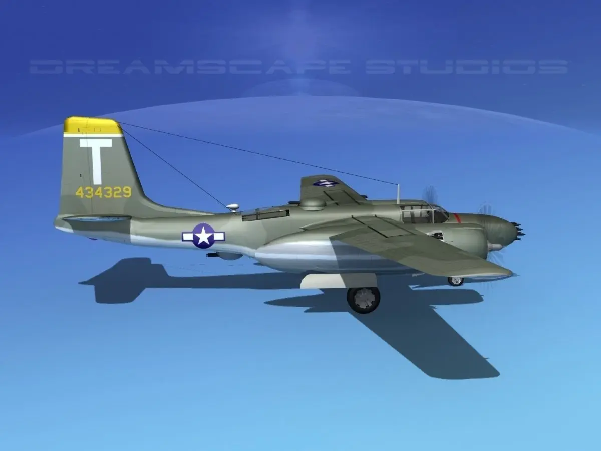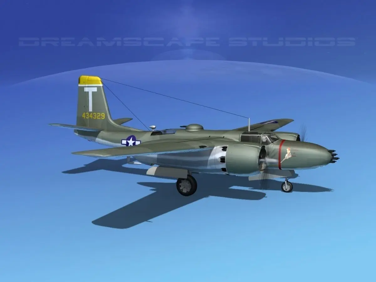 The Douglas A-26A Invader was built during WWII as a strafing and low level medium bomber platform. It was used extensively in all theatres of the war including Europe, Middle East, Asia and the Pacific especially in the southwest pacific. These aircraft were used to attack ground positions, airfields and shipping to destroy enemy capability and resources. These aircraft were exceptionally successful and continued to serve the US through the following 20 years. They were armed with 6-14 machine guns of 30 or 50 caliber, 20 mm cannons and one version was equipped with a 75 MM anti tank gun to use against shipping and hardened ground targets.