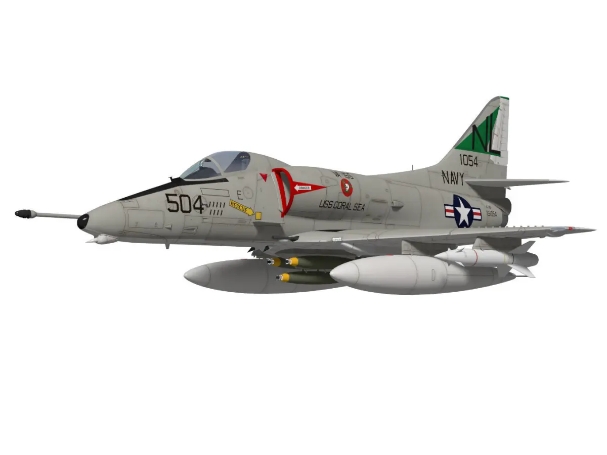 The Douglas A-4 Skyhawk is a jet ship attack aircraft developed in the 1950s and used by the U.S. Navy and around the world.The model is E type.The texture of the original data may have changed due to export.Landing gear of the model is divided into flight state and landing state parts.(They are in the folders gopen.gclose).Other operating parts are separated. However, please note that the rig is not reflected.This model is not intended for use in games or other low-polygon applications.This model is not intended for 3D printing.Please be careful when purchasing.