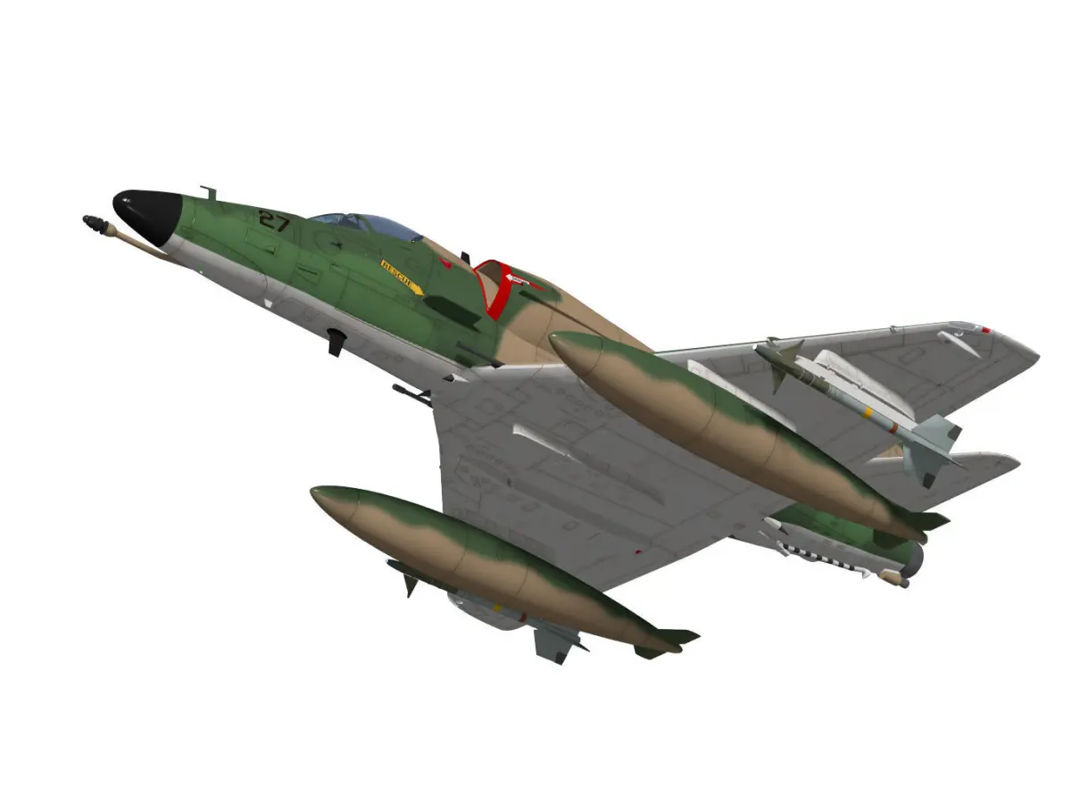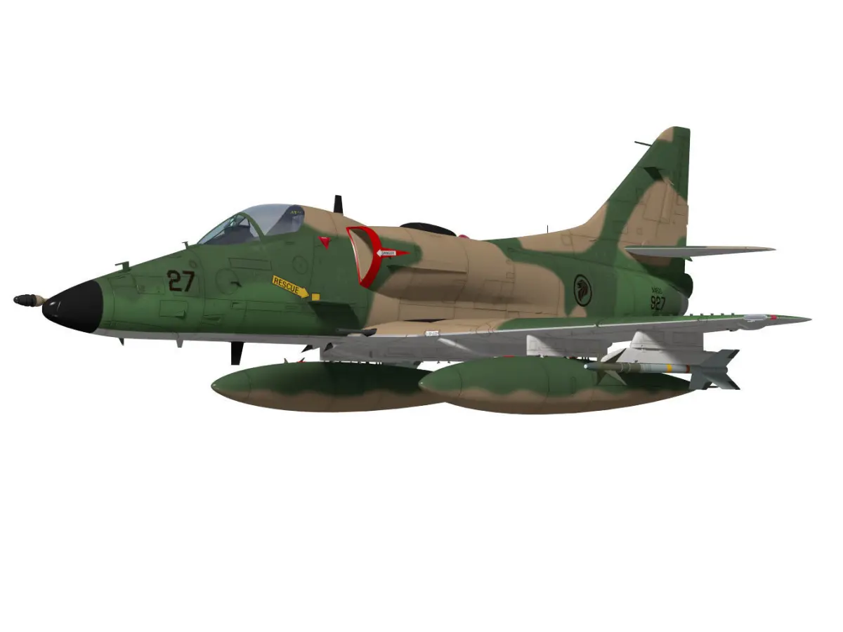 The Douglas A-4 Skyhawk is a jet ship attack aircraft developed in the 1950s and used by the U.S. Navy and around the world.The model is a type SU used in Singapore.The texture of the original data may have changed due to export.Landing gear of the model is divided into flight state and landing state parts.(They are in the folders gopen.gclose).Other operating parts are separated. However, please note that the rig is not reflected.This model is not intended for use in games or other low-polygon applications.This model is not intended for 3D printing.Please be careful when purchasing.