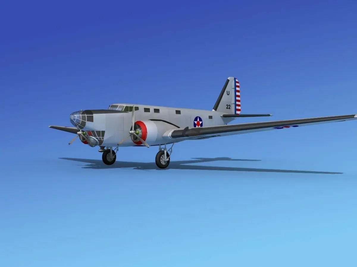 Douglas B-18 Bolo was built near to scale of actual general dimensions and fully textured. It comes with animateable propellers, ailerons, elevators, flaps and rudder. The landing gear can be retracted or extended. This model is available in different formats.