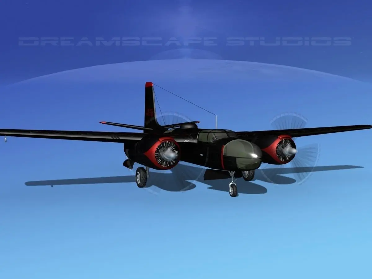 The Douglas A-26B, A-26C, B-26B, B-26C, and A-26K built by Dreamscape Studios are our latest high value models. These models are built near to scale (within a couple of percent in overall dimensions), fully painted and textured with realistic maps, and includes a great deal of detail. The model includes geometrically detailed radial engines (although the A and B-26 had twin row radials we only used a single row radial to keep poly count at a more reasonable level. Much of the cockpit, rear gunners position and in the C models the forward position have some detail and major components are modeled. The cockpit detail include seat, controls and instrumentation, rudder pedals and step down passage for the C models. These models also have animated propellers, animateable ailerons, elevators, flaps, inboard flaps, rudder, cowling flaps, landing gear retraction and landing gear doors.