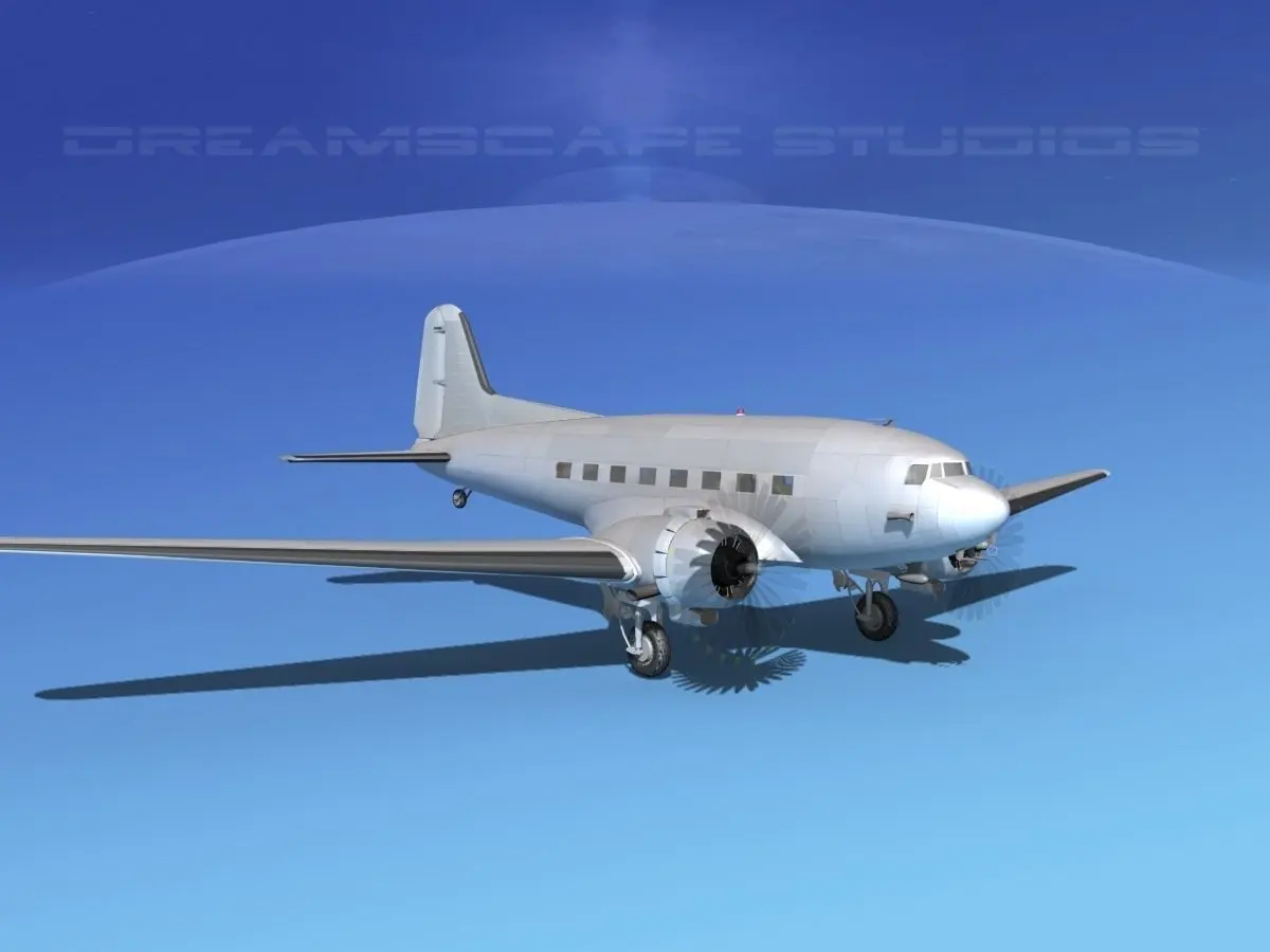 This model is built near to scale. It has a great deal of detail, especially in the engines. The model is fully textured including rivet patters over most of the surfaces of the aircraft. The propellers, landing gear, ailerons, flaps, elevators, and rudder are all animateable. The model comes with the textures and materials as shown. It also is available in multiple formats for your immediate downloading.