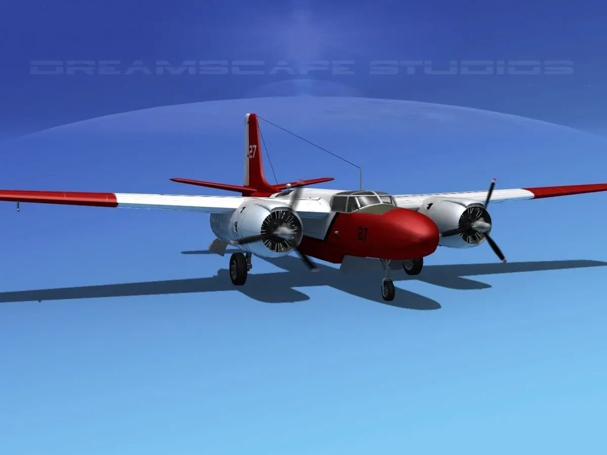 This high poly model is build very near to scale and is within a couple of percent of the actual dimensions. It has a detailed exterior including radio antennas and pitot tubes. Landing gear have been finished with a moderate amount of detail too. Some interior cockpit and rear compartment detail is also modeled and textured. Instrument panels and controls are also modeled and textured. The model is fully textured and the materials and textures are provided as shown. This model uses high res materials and textures. The model geometry is available in several formats. The materials and paint scheme are provided as shown. Engines are modeled including a good amount of detail, the four bladed propeller is animated. Landing gear, landing gear doors, ailerons, elevators, rudder and flaps are all animateable. Wheels and tires are also animateable. This model also has an animateable water tank doors.