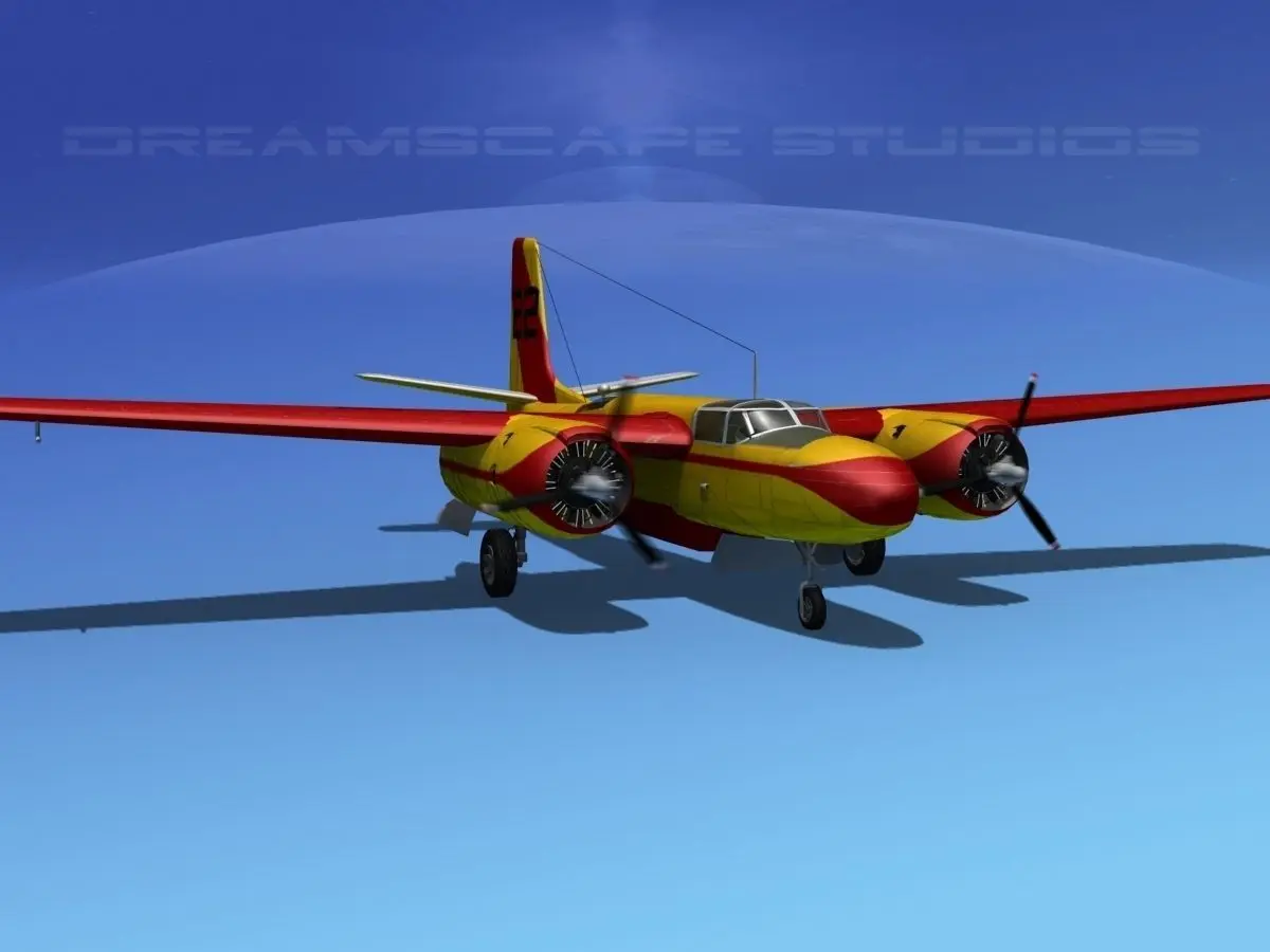 This high poly model is build very near to scale and is within a couple of percent of the actual dimensions. It has a detailed exterior including radio antennas and pitot tubes. Landing gear have been finished with a moderate amount of detail too. Some interior cockpit and rear compartment detail is also modeled and textured. Instrument panels and controls are also modeled and textured. The model is fully textured and the materials and textures are provided as shown. This model uses high res materials and textures. The model geometry is available in several formats. The materials and paint scheme are provided as shown. Engines are modeled including a good amount of detail, the four bladed propeller is animated. Landing gear, landing gear doors, ailerons, elevators, rudder and flaps are all animateable. Wheels and tires are also animateable. This model also has an animateable water tank doors.