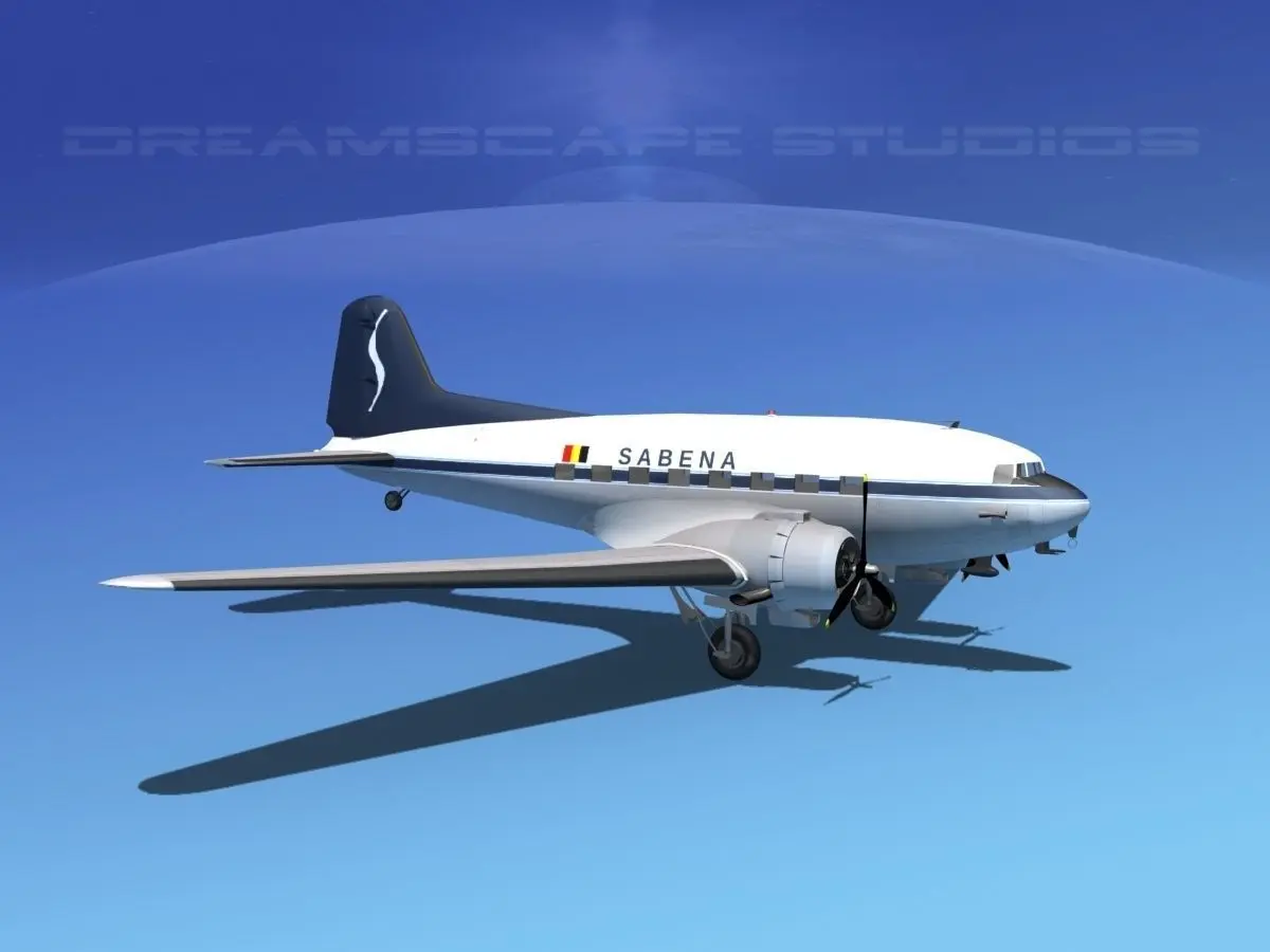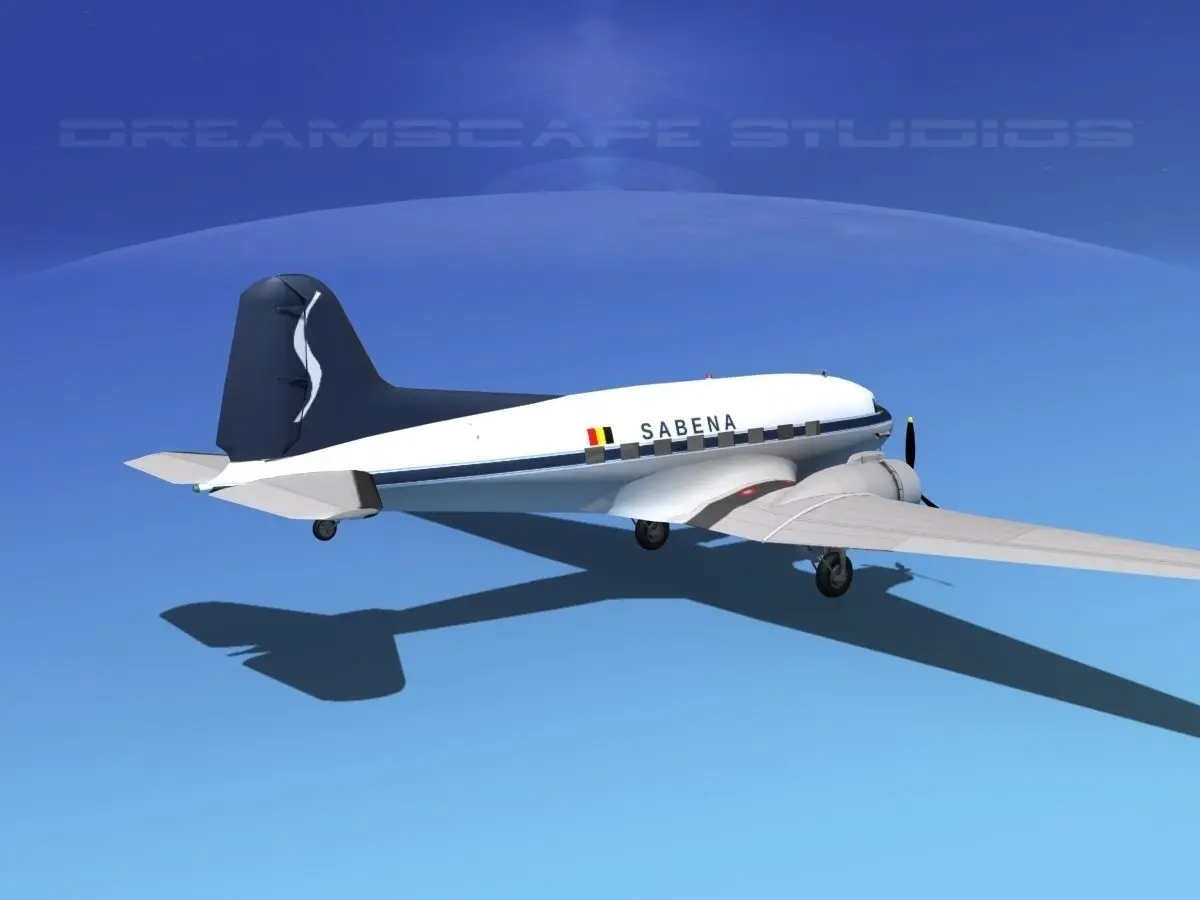 Home Catalog Historic aircraft Douglas DC-3 Sabena 3D model