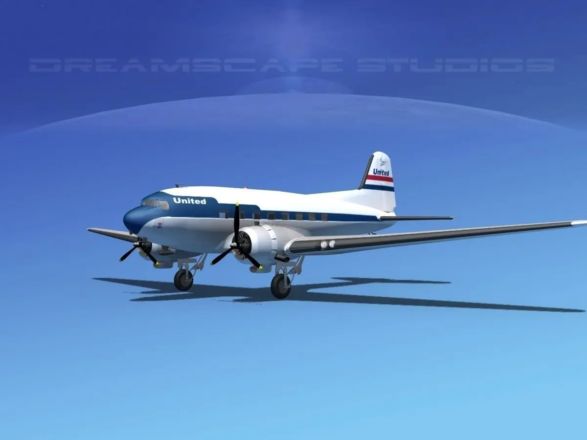 Dreamscape DC-3 was built near to scale within few inches of actual general dimensions and in good detail. It has a great deal of engine detail. The propellers, landing gear elevators, ailerons, rudder and flaps are animateable. It is fully textured and comes in 12 different formats and in many different airliners liveries.
