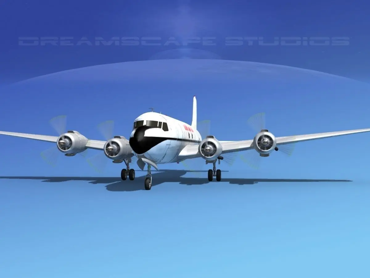 This high quality detailed polygonal model is built nearly scale for an accurate representation of the original object. All textures and materials are included and UVW mapped in most formats. It includes animateable landing gear, landing gear doors, ailerons, elevators, rudder and flaps. Propellers are animated. It comes in multiple formats and airline liveries.The Douglas DC-6 is a piston-powered airliner and transport aircraft built by the Douglas Aircraft Company from 1946 to 1958. Originally intended as a military transport near the end of World War II, it was reworked after the war in the long-range commercial transport market. More than 700 were built and many still fly today in cargo, military and wildfire control roles.The DC-6 was known as the C-118 Liftmaster in United States Air Force service and as the R6D in United States Navy service prior to 1962, after which all U.S. Navy variants were also designated as the C-118.