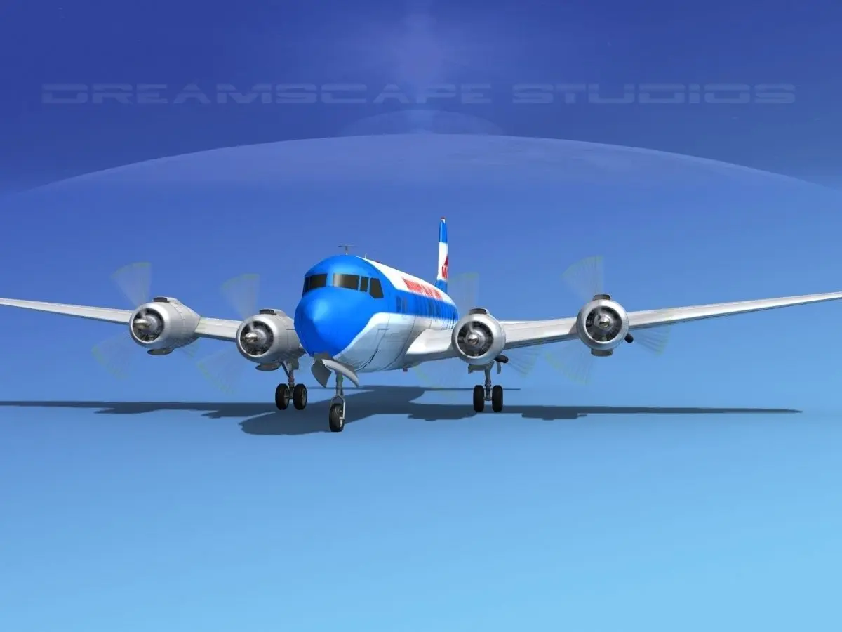 This high quality detailed polygonal model is built nearly scale for an accurate representation of the original object. All textures and materials are included and UVW mapped in most formats. It includes animateable landing gear, landing gear doors, ailerons, elevators, rudder and flaps. Propellers are animated. It comes in multiple formats and airline liveries.The Douglas DC-6 is a piston-powered airliner and transport aircraft built by the Douglas Aircraft Company from 1946 to 1958. Originally intended as a military transport near the end of World War II, it was reworked after the war in the long-range commercial transport market. More than 700 were built and many still fly today in cargo, military and wildfire control roles.The DC-6 was known as the C-118 Liftmaster in United States Air Force service and as the R6D in United States Navy service prior to 1962, after which all U.S. Navy variants were also designated as the C-118.