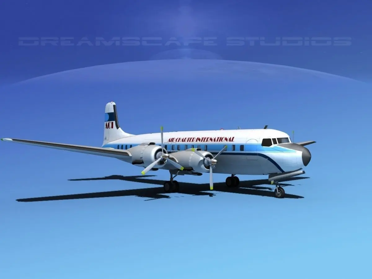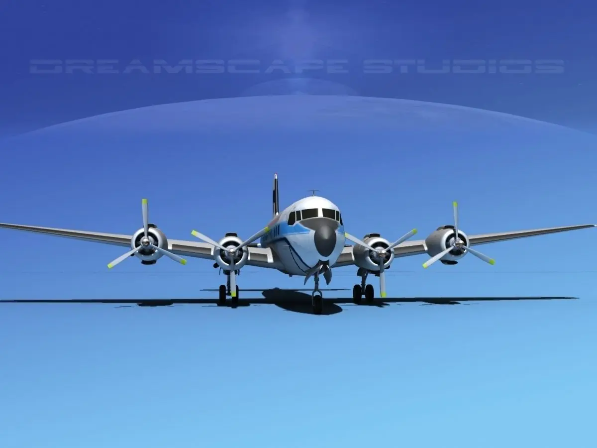 This model was built very near to scale, fully textured and with a good amount of detail. Control surfaces are animateable including flaps, ailerons, elevators and rudder. Landing gear, landing gear doors and propellers are also animateable. A full double row radial engine is modeled in the cowlings and animateable cowling flaps are also modeled. In addition this model comes in a wide variety of formats. The Douglas DC-7 is an American transport aircraft built by the Douglas Aircraft Company from 1953 to 1958. It was the last major piston-engine powered transport made by Douglas, coming just a few years before the advent of jet aircraft.