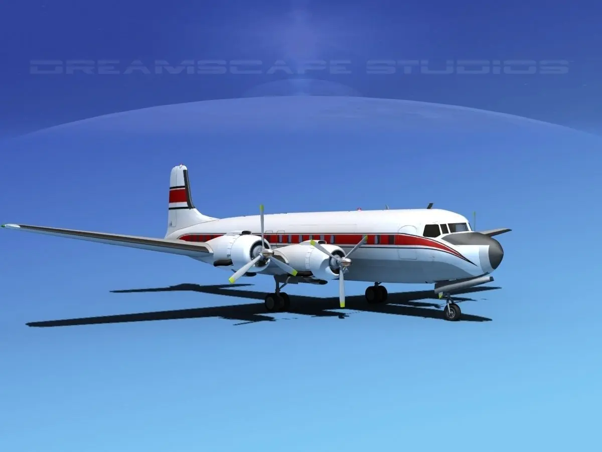 This model was built very near to scale, fully textured and with a good amount of detail. Control surfaces are animateable including flaps, ailerons, elevators and rudder. Landing gear, landing gear doors and propellers are also animateable. A full double row radial engine is modeled in the cowlings and animateable cowling flaps are also modeled. In addition this model comes in a wide variety of formats. The Douglas DC-7 is an American transport aircraft built by the Douglas Aircraft Company from 1953 to 1958. It was the last major piston-engine powered transport made by Douglas, coming just a few years before the advent of jet aircraft.