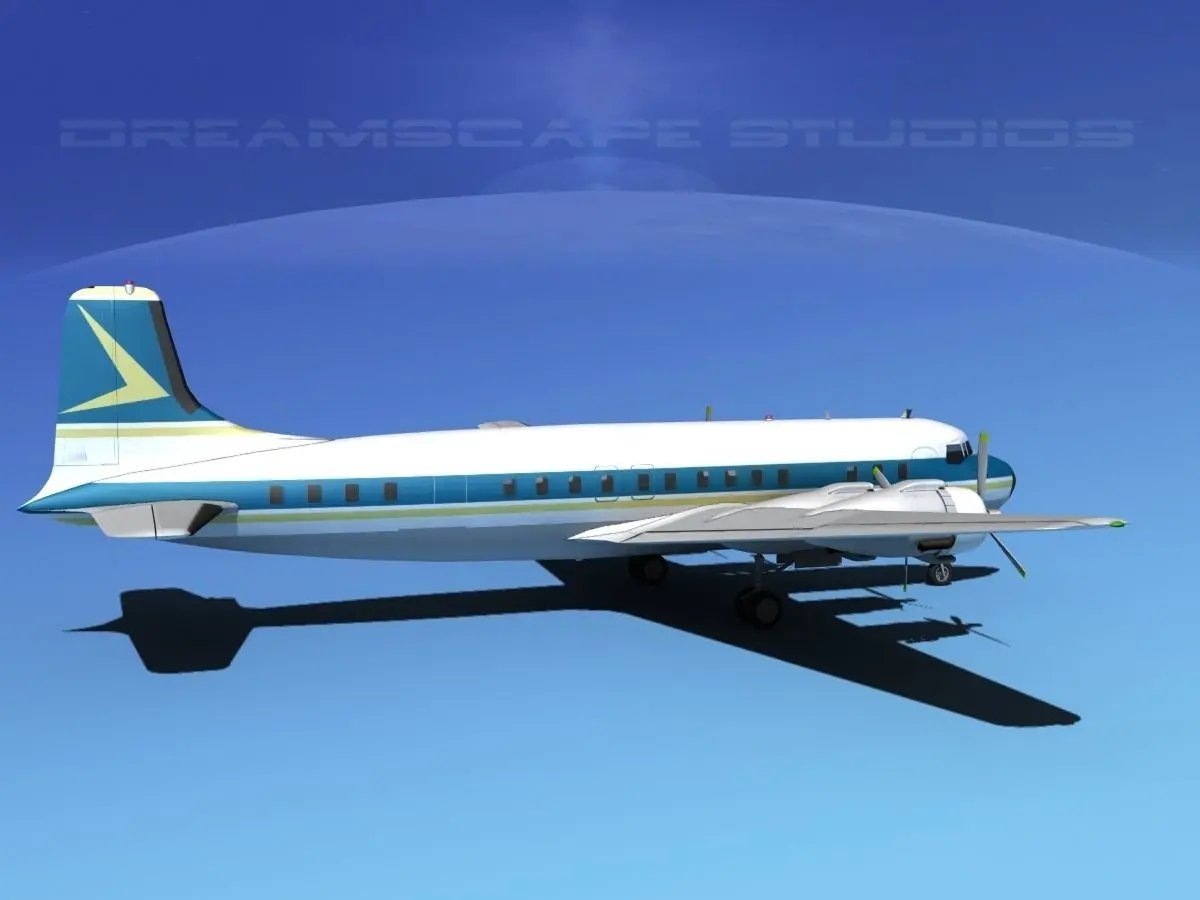 This model was built very near to scale, fully textured and with a good amount of detail. Control surfaces are animateable including flaps, ailerons, elevators and rudder. Landing gear, landing gear doors and propellers are also animateable. A full double row radial engine is modeled in the cowlings and animateable cowling flaps are also modeled. In addition this model comes in a wide variety of formats. The Douglas DC-7 is an American transport aircraft built by the Douglas Aircraft Company from 1953 to 1958. It was the last major piston-engine powered transport made by Douglas, coming just a few years before the advent of jet aircraft.