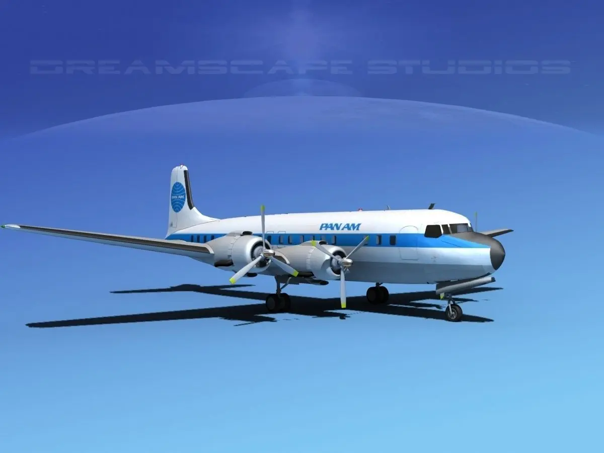 This model was built very near to scale, fully textured and with a good amount of detail. Control surfaces are animateable including flaps, ailerons, elevators and rudder. Landing gear, landing gear doors and propellers are also animateable. A full double row radial engine is modeled in the cowlings and animateable cowling flaps are also modeled. In addition this model comes in a wide variety of formats. The Douglas DC-7 is an American transport aircraft built by the Douglas Aircraft Company from 1953 to 1958. It was the last major piston-engine powered transport made by Douglas, coming just a few years before the advent of jet aircraft.