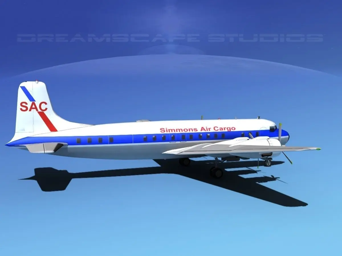 This model was built very near to scale, fully textured and with a good amount of detail. Control surfaces are animateable including flaps, ailerons, elevators and rudder. Landing gear, landing gear doors and propellers are also animateable. A full double row radial engine is modeled in the cowlings and animateable cowling flaps are also modeled. In addition this model comes in a wide variety of formats. The Douglas DC-7 is an American transport aircraft built by the Douglas Aircraft Company from 1953 to 1958. It was the last major piston-engine powered transport made by Douglas, coming just a few years before the advent of jet aircraft.