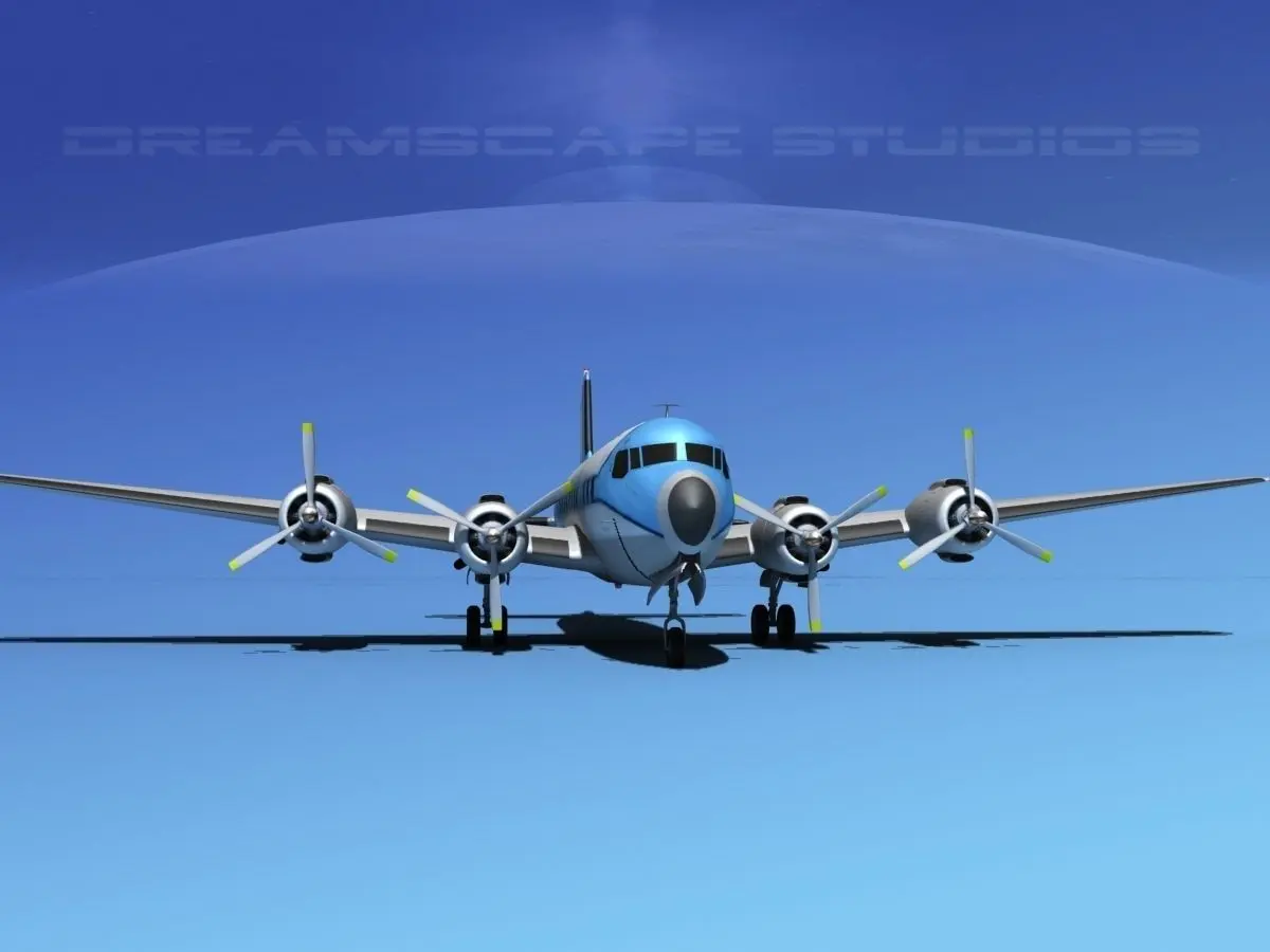 This model was built very near to scale, fully textured and with a good amount of detail. Control surfaces are animateable including flaps, ailerons, elevators and rudder. Landing gear, landing gear doors and propellers are also animateable. A full double row radial engine is modeled in the cowlings and animateable cowling flaps are also modeled. In addition this model comes in a wide variety of formats. The Douglas DC-7 is an American transport aircraft built by the Douglas Aircraft Company from 1953 to 1958. It was the last major piston-engine powered transport made by Douglas, coming just a few years before the advent of jet aircraft.