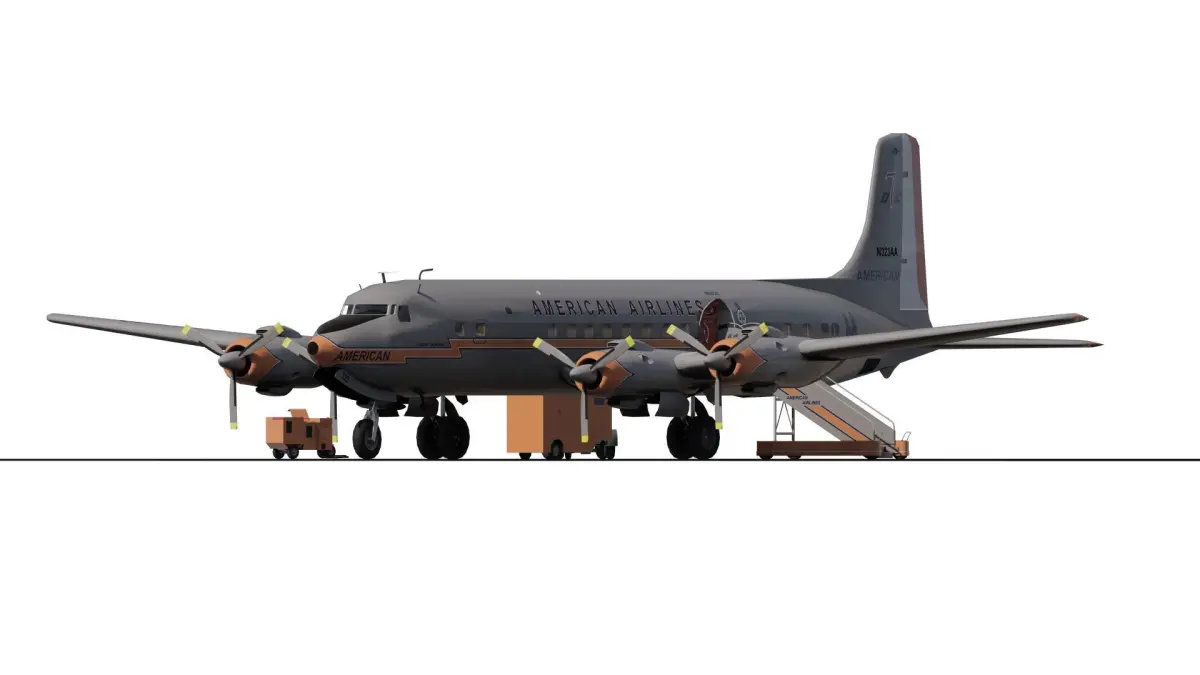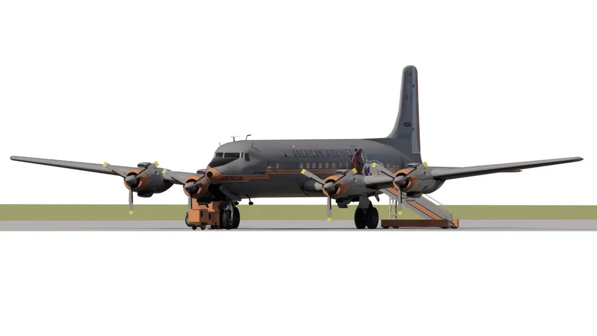 Description This is a model of the American Airline DC-7C 1954. The 3d model is textured and iluminated for two scenes. One daylight and one with rainy scene. The model is ready to render with Lumion 12.5 or above.