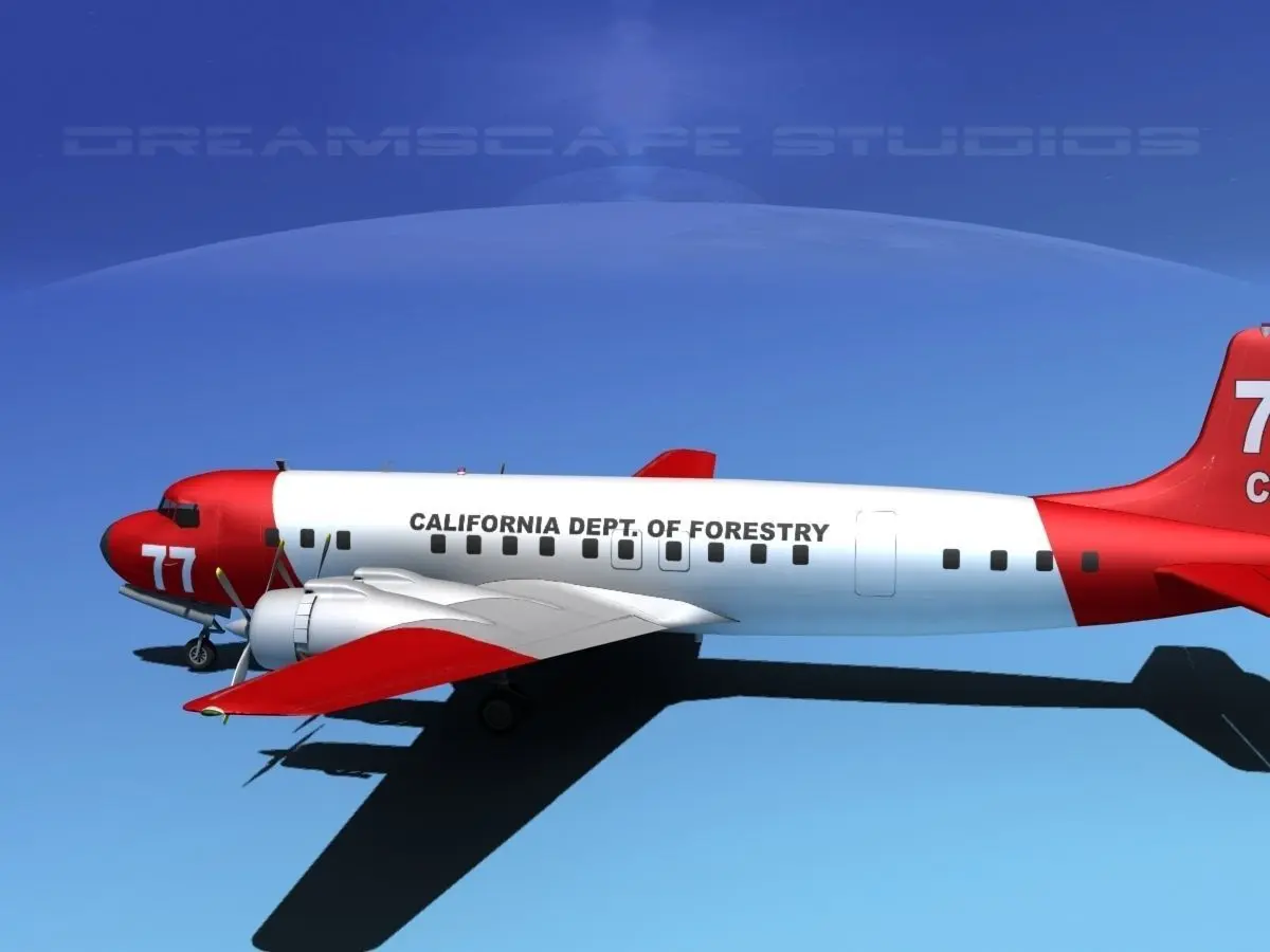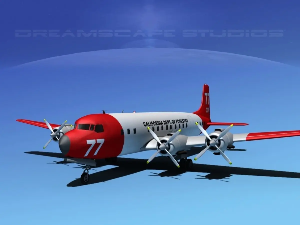 Douglas DC-7C was built near to scale by actual dimensions and in some good detail. Control surfaces are animateable including flaps, ailerons, elevators and rudder. Landing gear, landing gear doors and propellers are also animateable. A full double row radial engine is modeled in the cowlings and animateable cowling flaps are also modeled. In addition this model comes in a wide variety of formats.