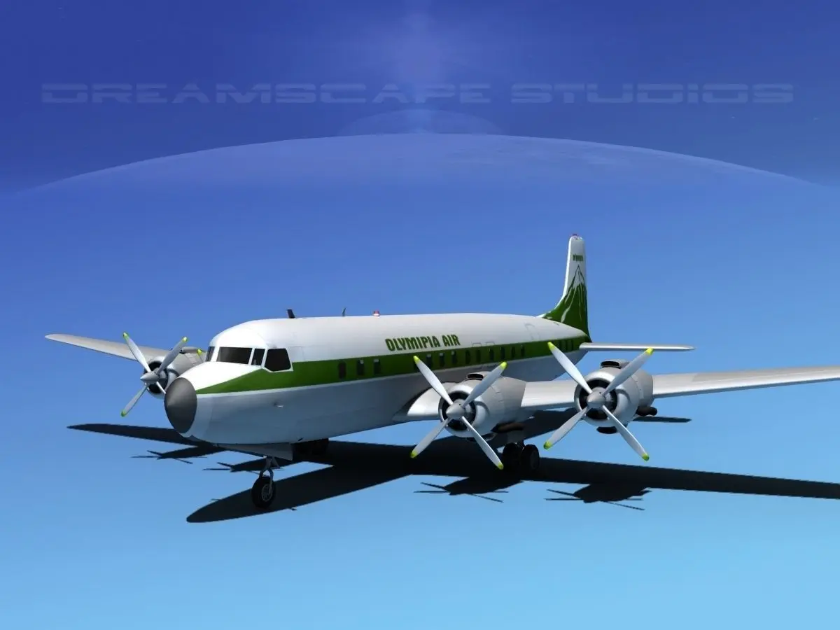 Douglas DC-7C was built near to scale by actual dimensions and in some good detail. Control surfaces are animateable including flaps, ailerons, elevators and rudder. Landing gear, landing gear doors and propellers are also animateable. A full double row radial engine is modeled in the cowlings and animateable cowling flaps are also modeled. In addition this model comes in a wide variety of formats.