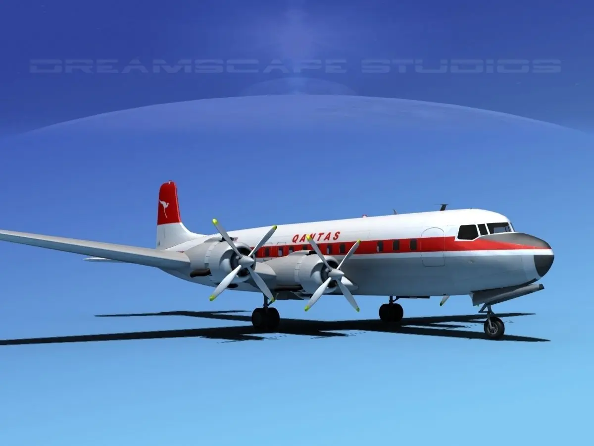 Douglas DC-7C was built near to scale by actual dimensions and in some good detail. Control surfaces are animateable including flaps, ailerons, elevators and rudder. Landing gear, landing gear doors and propellers are also animateable. A full double row radial engine is modeled in the cowlings and animateable cowling flaps are also modeled. In addition this model comes in a wide variety of formats.