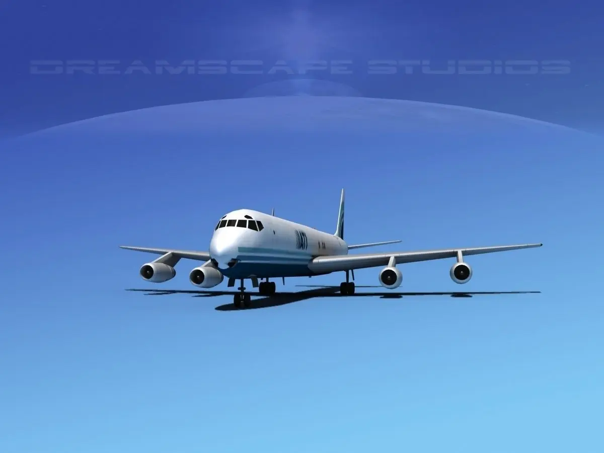 The Douglas DC-8 was a rival of the 707 series. It was developed at the same time and was very similar in design and capabilities. DC-8 was historic and popular with airlines. The first DC-8 flew in 1957. These aircraft had a good safety record and were used in main airline routes until late in the 1970s. Many were modified to carry freight for many years after their passenger carrying service was over. Some are still flying in a freighter role 50 years after their initial development.