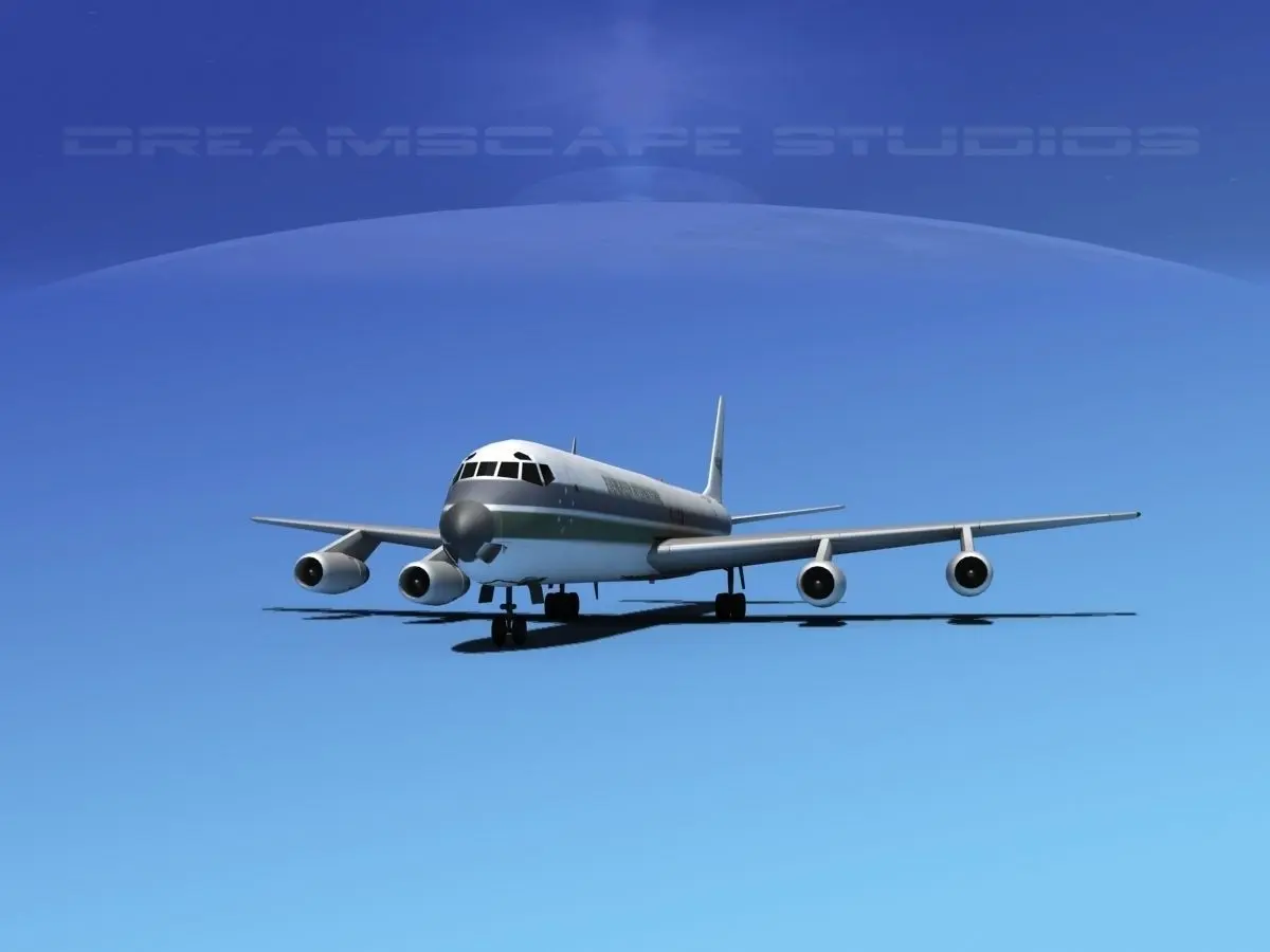 The Douglas DC-8 was a rival of the 707 series. It was developed at the same time and was very similar in design and capabilities. DC-8 was historic and popular with airlines. The first DC-8 flew in 1957. These aircraft had a good safety record and were used in main airline routes until late in the 1970s. Many were modified to carry freight for many years after their passenger carrying service was over. Some are still flying in a freighter role 50 years after their initial development.