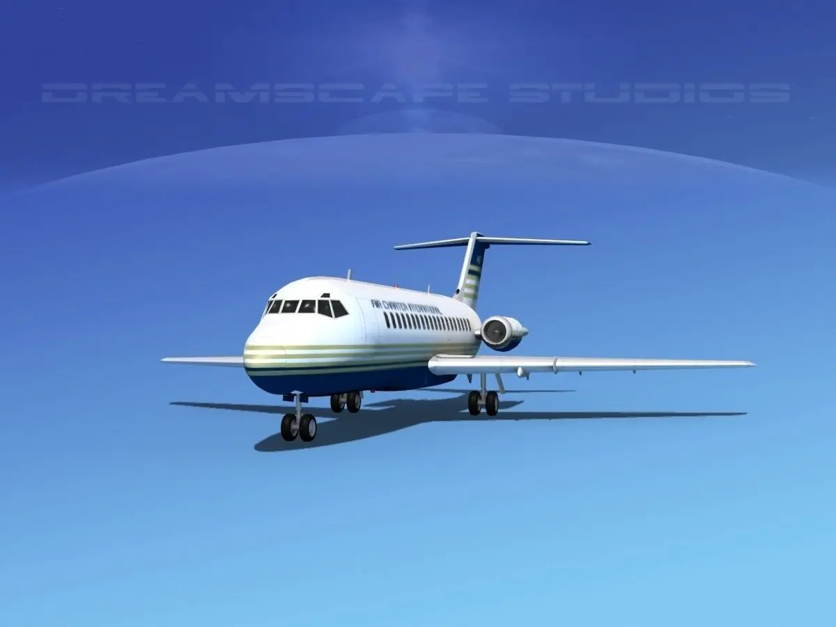 This high poly model is build very near to scale and is within a couple of percent of the actual dimensions. It has a detailed exterior including radio antennas and pitot tubes. Landing gear have been finished with a moderate amount of detail too. The model is fully textured and comes with all materials and textures. In addition this model comes with animateable ailerons, flaps, elevators, rudder, landing gear, landing gear doors and turbines. The model is available in several different formats for immediate downloading here. We are providing the DC-9-15 model in a range of liveries.