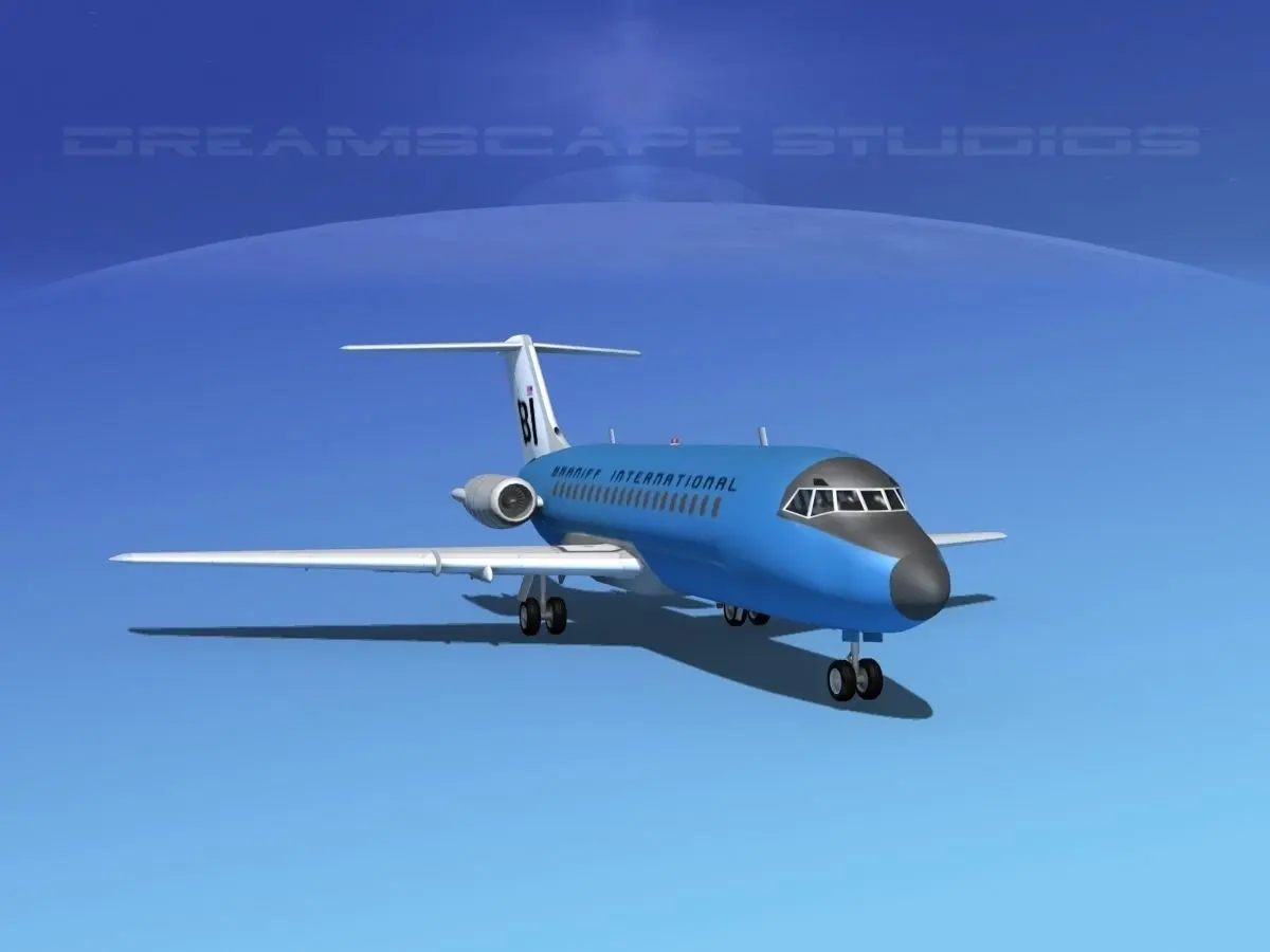 This high poly model is build very near to scale and is within a couple of percent of the actual dimensions. It has a detailed exterior including radio antennas and pitot tubes. Landing gear have been finished with a moderate amount of detail too. The model is fully textured and comes with all materials and textures. In addition this model comes with animateable ailerons, flaps, elevators, rudder, landing gear, landing gear doors and turbines. The model is available in several different formats for immediate downloading here. We are providing the DC-9-15 model in a range of liveries.