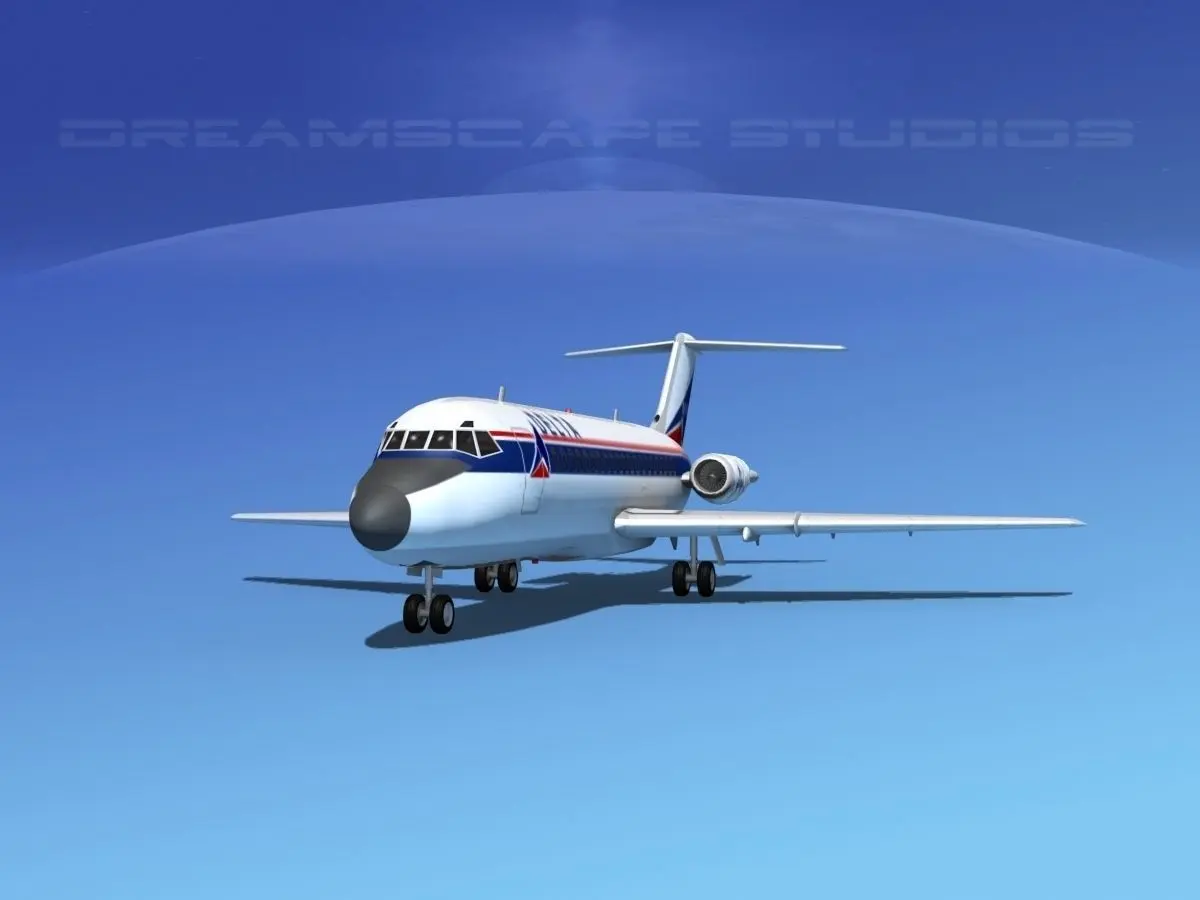 This high poly model is build very near to scale and is within a couple of percent of the actual dimensions. It has a detailed exterior including radio antennas and pitot tubes. Landing gear have been finished with a moderate amount of detail too. The model is fully textured and comes with all materials and textures. In addition this model comes with animateable ailerons, flaps, elevators, rudder, landing gear, landing gear doors and turbines. The model is available in several different formats for immediate downloading here. We are providing the DC-9-15 model in a range of liveries.