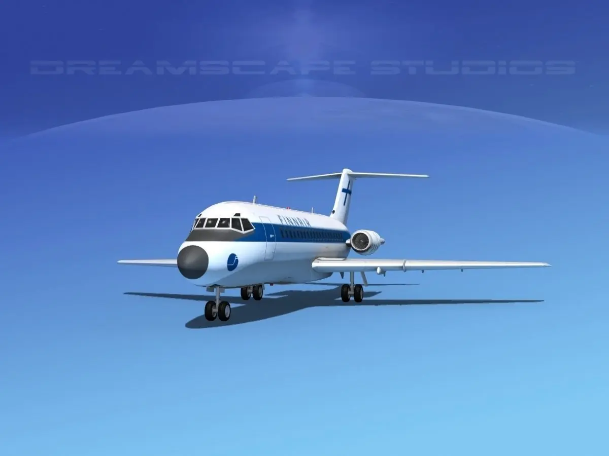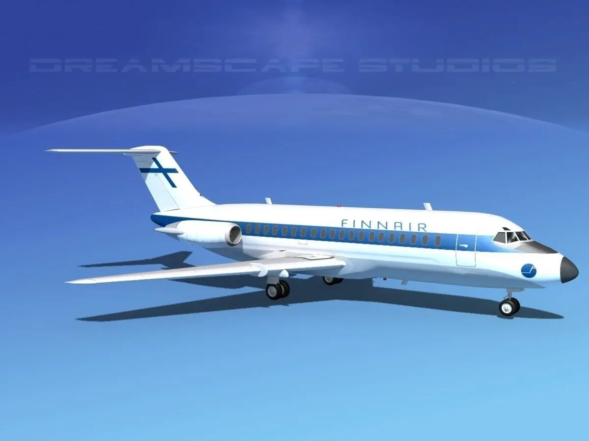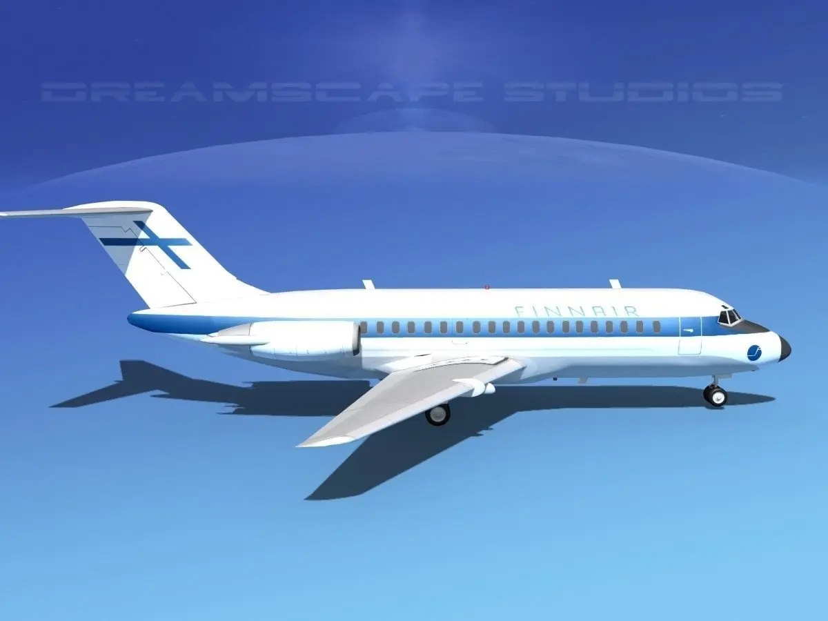 This high poly model is build very near to scale and is within a couple of percent of the actual dimensions. It has a detailed exterior including radio antennas and pitot tubes. Landing gear have been finished with a moderate amount of detail too. The model is fully textured and comes with all materials and textures. In addition this model comes with animateable ailerons, flaps, elevators, rudder, landing gear, landing gear doors and turbines. The model is available in several different formats for immediate downloading here. We are providing the DC-9-15 model in a range of liveries.