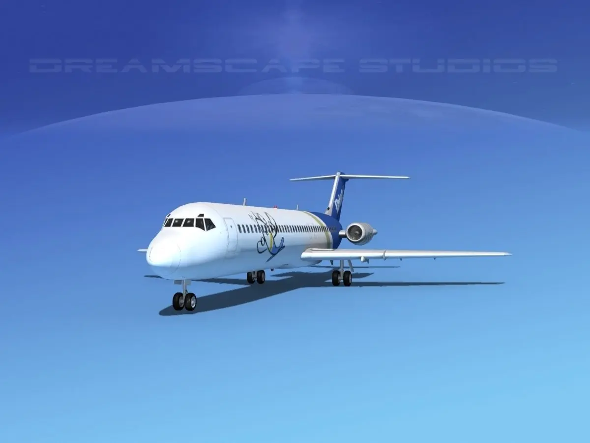 This high poly model is build very near to scale and is within a couple of percent of the actual dimensions. It has a detailed exterior including radio antennas and pitot tubes. Landing gear have been finished with a moderate amount of detail too. The model is fully textured and comes with all materials and textures. In addition this model comes with animateable ailerons, flaps, elevators, rudder, landing gear, landing gear doors and turbines. The model is available in several different formats for immediate downloading here. We are providing the DC-9-40 model in a range of liveries.