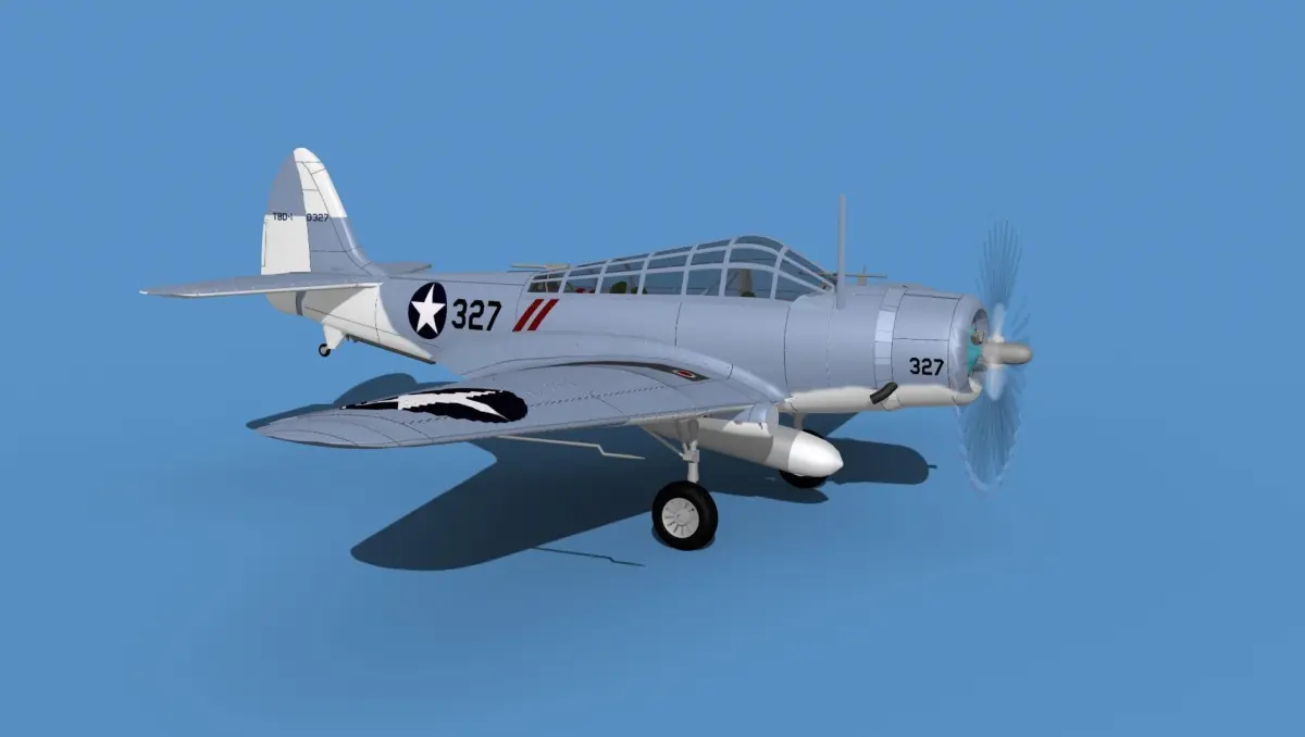 The TBD was ordered by the US Navy in 1934 and first flew in 1935. It began production and started service in 1937 and at the time was the most advanced aircraft in the US Navy and possibly the world. However these years just before WWII had very fast development of aircraft with increased capabilities and characteristics. By the time the Japanese attacked Pearl Harbor Hawaii drawing the US into WWII, the TBD was badly outdated and obsolete. It however was still in-service at the time of the Battle of Coral Sea and Midway. At Coral Sea it was moderately effective, but at Midway it was a complete disaster and only one pilot survived the battle in all of the torpedo quadroons. It was soon replaced with the Grumman TBF, a much better torpedo bomber aircraft.The model was built near to scale in real units and built based on drawings, photos, and other documents. This model has a moderately detailed cockpit and the following animateable features; sliding canopy, ailerons, elevators, rudder, and wheels. These models render very well and look very realistic using good animation, lighting and rendering technique. It can be used in an animated or static position within a scene, animation or animated video, or possibly programming for a flight simulation application. This model was not designed for 3d printing, these are to be used as digital files only. If you purchase one for digital printing we do not guarantee that your print will be successful.Exporting of models is limited but good for several software applications. This model is fully textured with all materials UVW mapped and applied. Most materials are planar mapped and major materials include texturing. All textures and materials are included as shown. Objects are logically named for ease of scene management.No cleaning up necessary, just drop your models into the scene and start rendering.No special plug-ins are needed to open scene.In most cases the liveries are based on actual service liveries or paint schemes. Many of the units, airlines or countries who flew the plane are represented here. Dreamscape Studios is a US 3d modeling firm specializing in building high definition, accurate, and detailed 3D models of commercial, civilian, and military airplanes, ships, buildings and other subjects.Dreamscape 3d models are built in ultra-low to ultra-high polygon count, (most often) near to scale and include a good amount of detail based on the resolution target. If you have a question, error or problem with the model, let us know and we will do our best to provide or get a solution for you. Be advised our models are not designed for 3d printing unless they are advertised for that purpose.