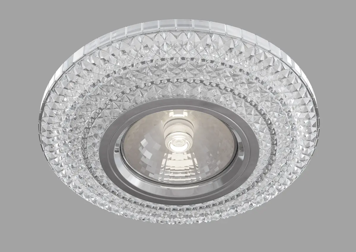 Recessed spotlight. Metal frame. Clear glass.Einbaustrahler mit Metallrahmen und Klarglas-Diffusor.Series: Metal ModernCollection: DownlightStyle: Maytoni TechnicalType of lamp: DownlightHeight, mm: 72Diameter, mm: 111Number of bulbs: 1Cap: GU10Power: 50WFrame material: MetalColour: White and Chrome