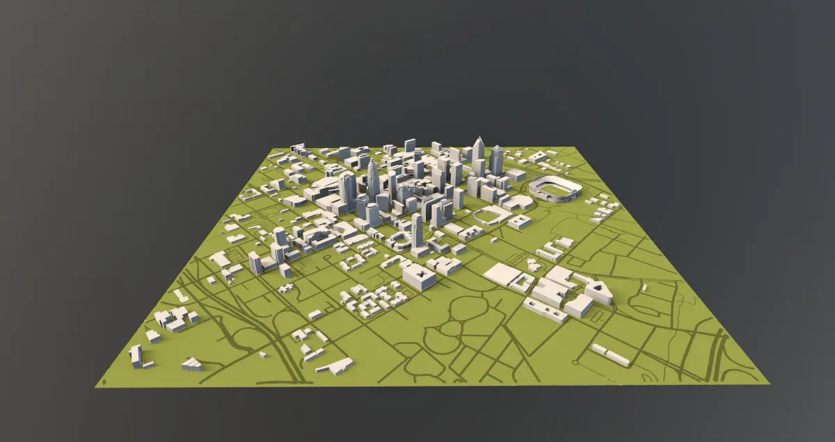 Basic massing model of downtown Charlotte North Carolina & site. The model was developed using 3D Coat for PBR, rendered and exported to the above file formats.