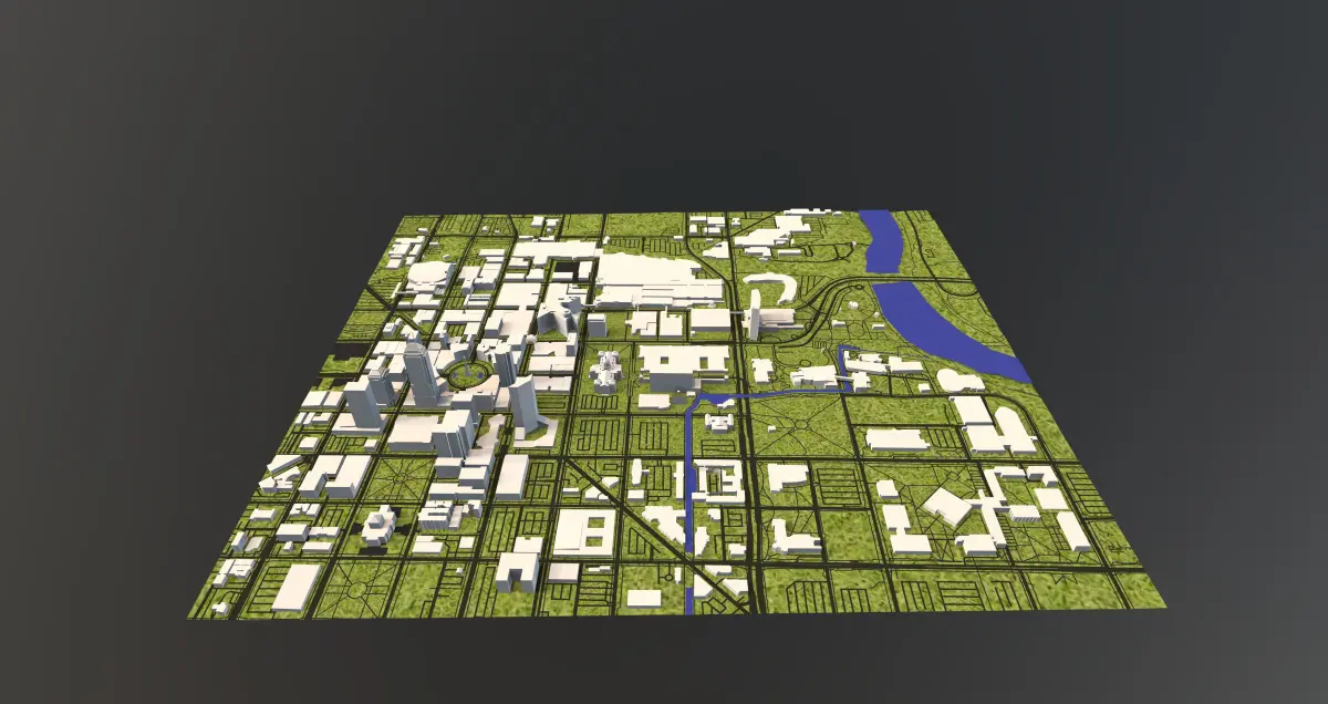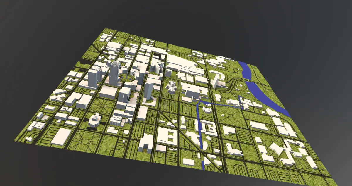 Massing model of downtown Indianapolis Indiana and surrounding landscape. The model was developed using 3D Coat for PBR, rendered and exported to the above file formats.