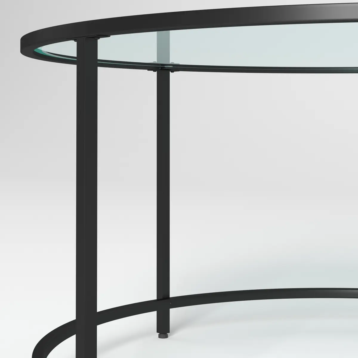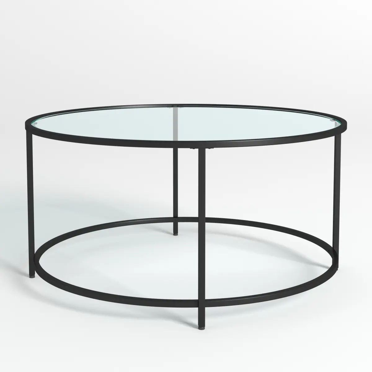Clean lines and a glam finish give this circular coffee table a sleek, elegant look. The frame is made from steel with an oil-rubbed finish in your choice of solid hue. Up top, a tempered glass tabletop provides just the right space for an accent lamp, a vase of flowers, a tray of snacks, and all of your other living room essentials in one place. Thanks to the adjustable feet, you can compensate for minor unevenness whether you place this table on a rug or hardwood. Plus, it has foot caps to protect your floor from scratches.