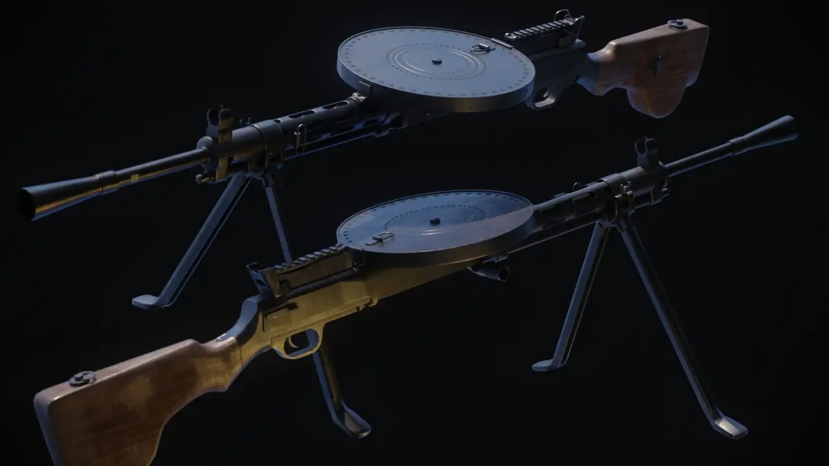 Low-poly game-ready 3D model of DP-27 Machine Gun