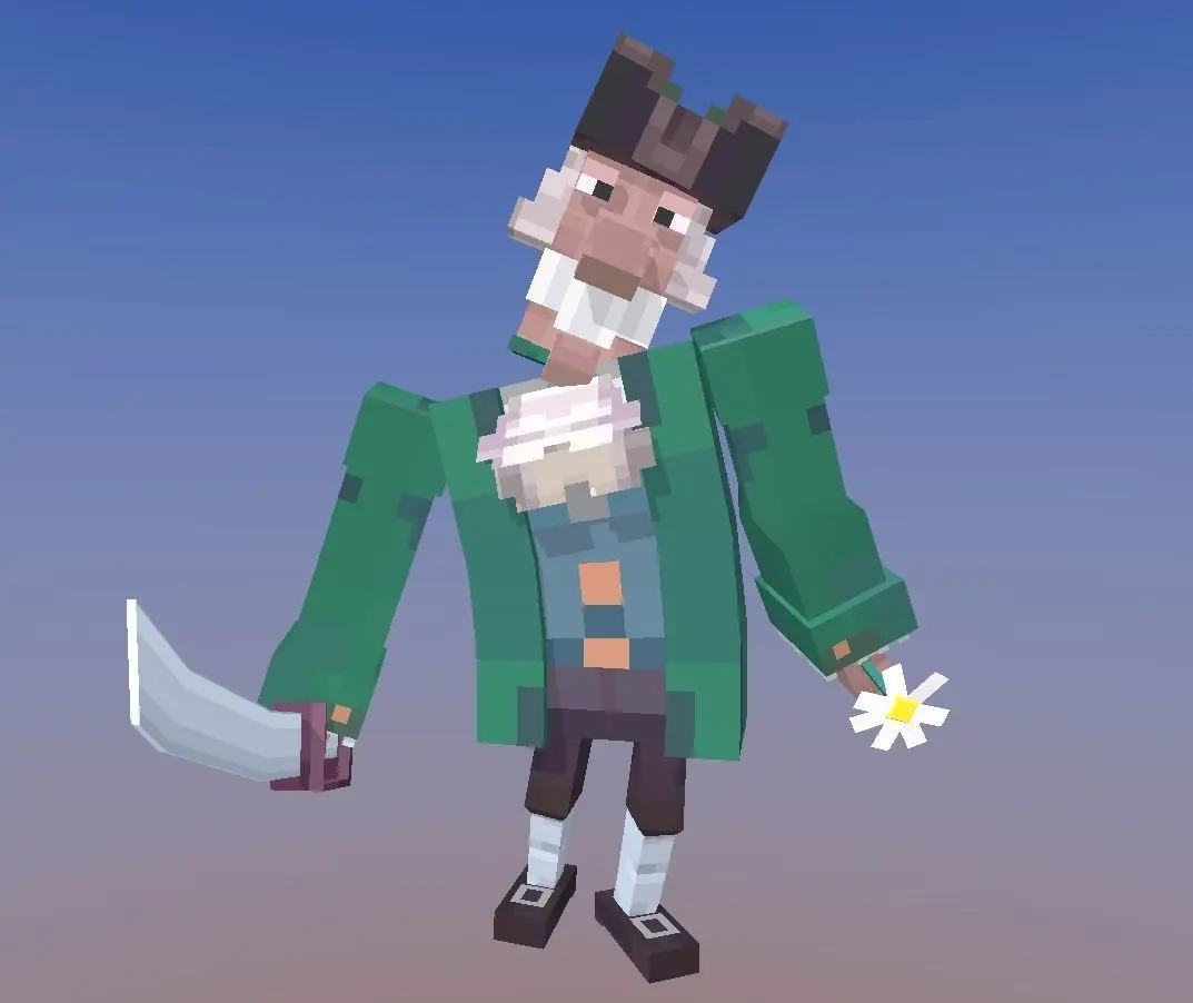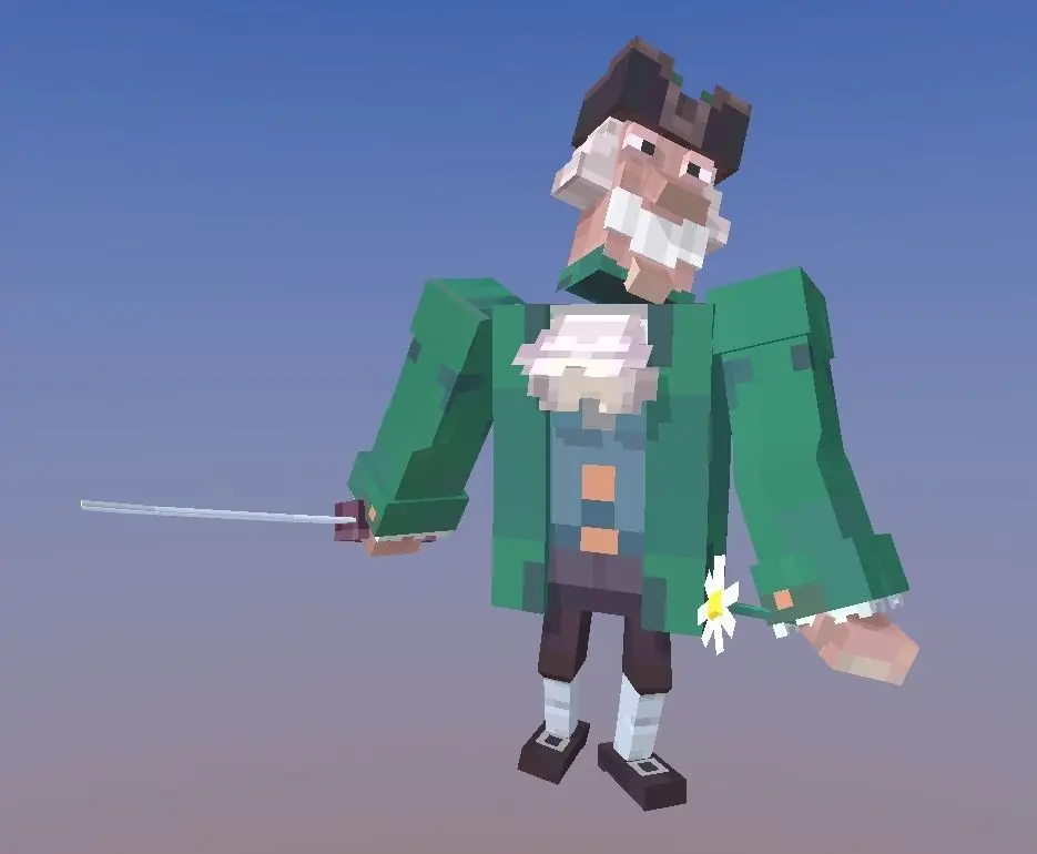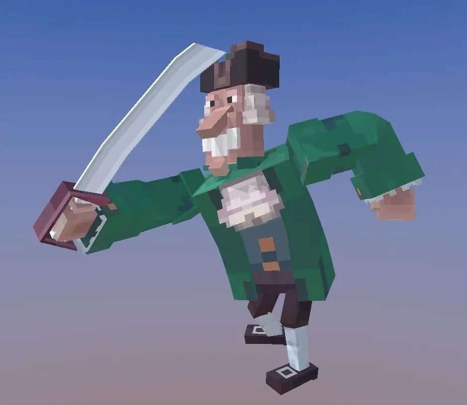 Rigged humanoid 3D model of Dr Livsey in minecraft style. Created as a mashup of old historical Russian movie called Treasure Island and minecraft style.