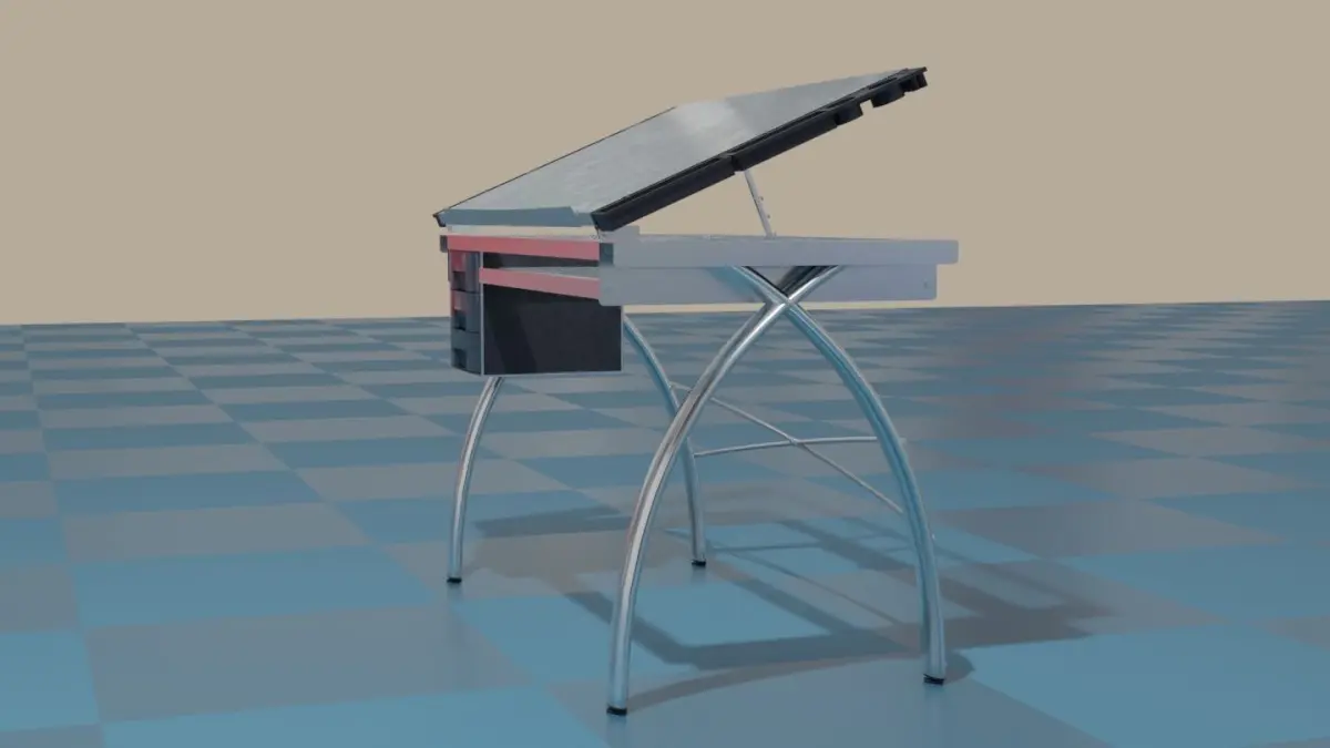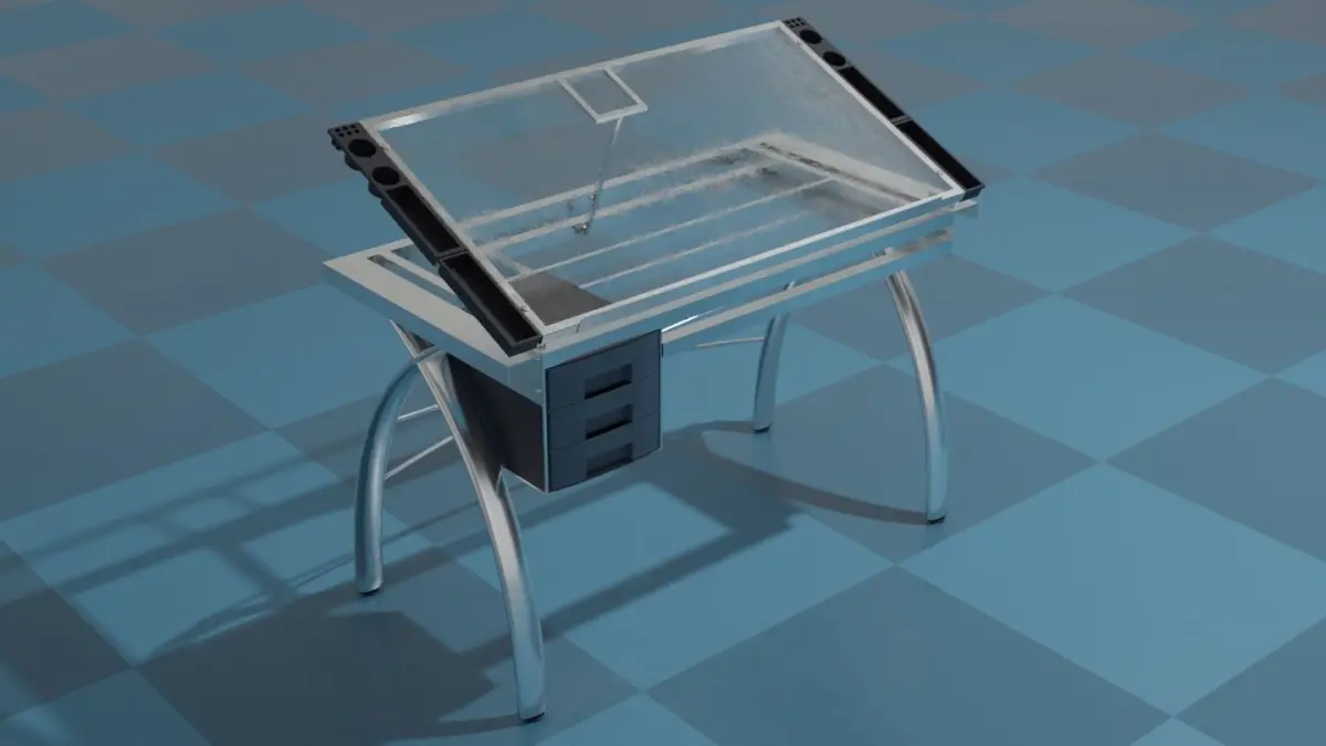 This drafting table will suit any modern environment.There is only one material for all the parts of the table for easy material/texture setup in any 3D software.The Blender file has the textures pack and is ready to use straight out of the box. There are also controllers created in Blender for each part of the table for easy animation or configuration of the parts.Glass is a tricky subject and you might need to tweak the glass as a separate material in your software. I have optimised the glass material in the Blender file.The table is divided into the legs, drawers, raiser-arm and table-top.The raiser-arm is parented to the table top, the table top and drawers are parented to the legs. If you move the legs everything else should follow.