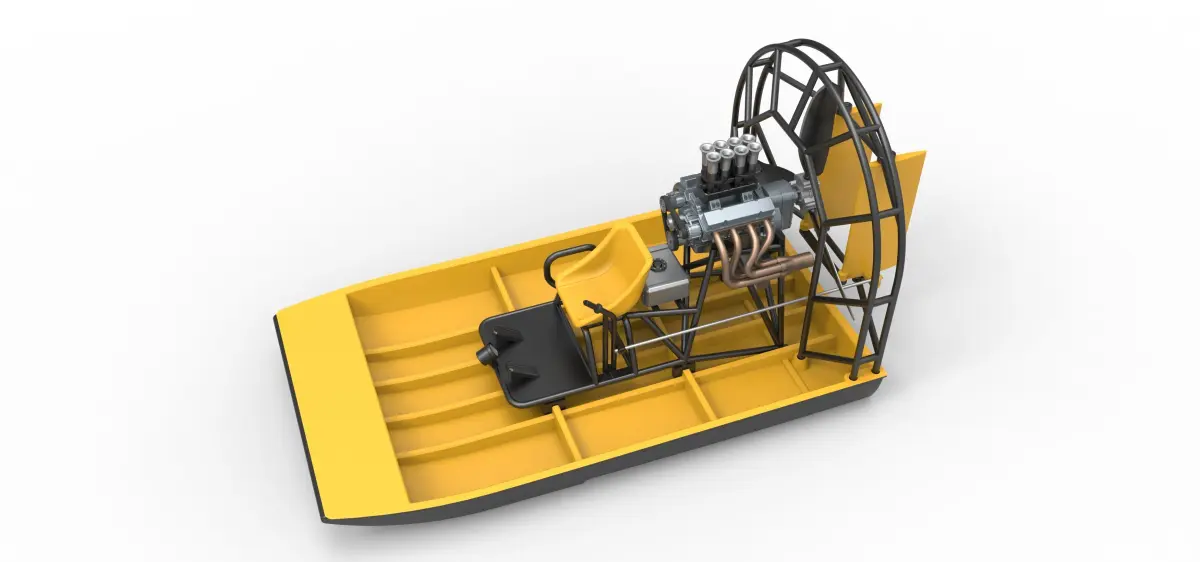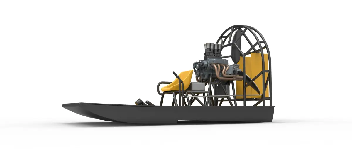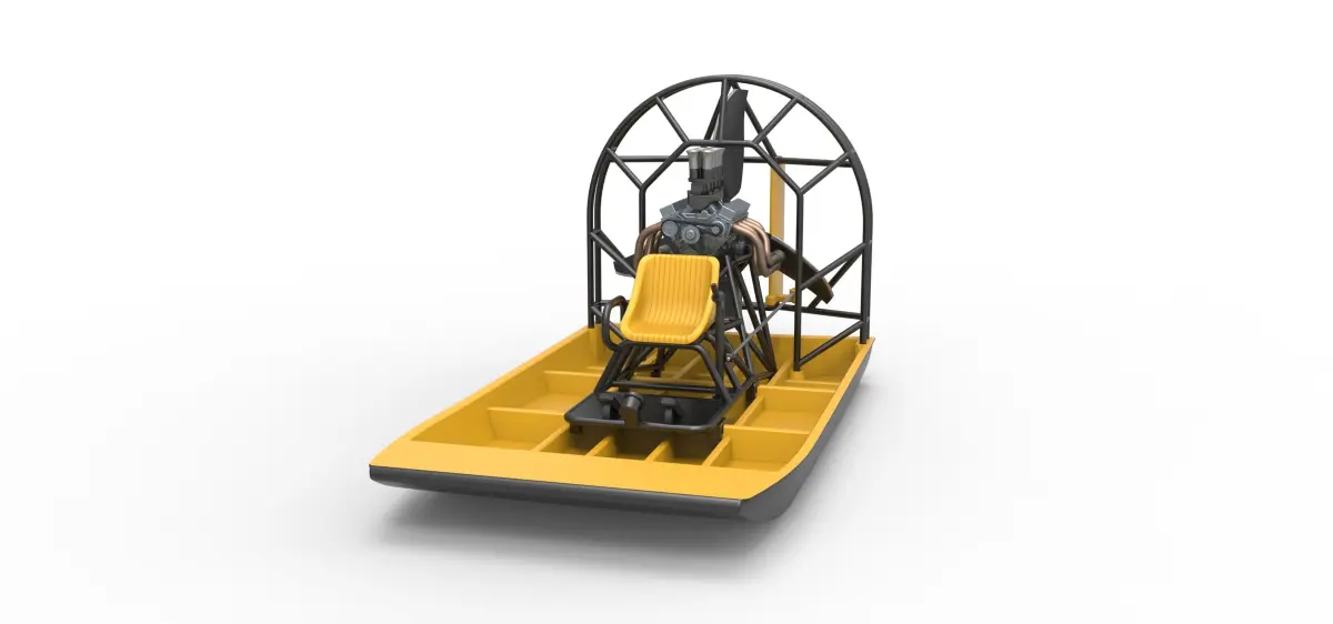 The model consists of parts: Air intake, Cage, Connector, Engine, Frame, Hull, Left exhaust pipes, Propeller Blades, Propeller Hub, Radiator, Rear left plate, Rear right plate, Right exhaust pipes, Seat, Tank.
