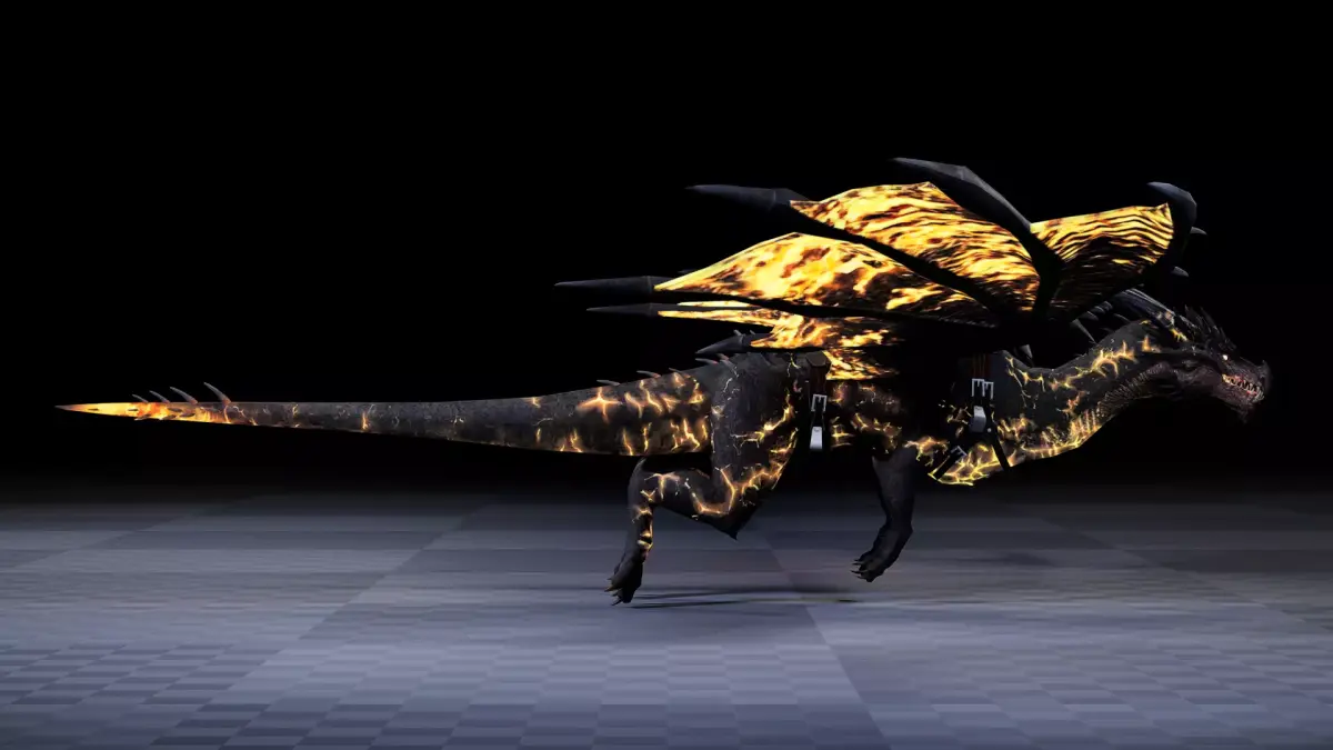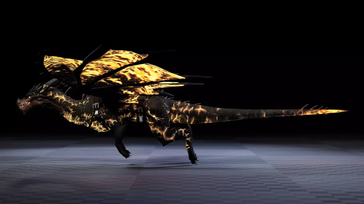 Unleash the Magma Fiend, a creature of unparalleled power and menace, captured here as a highly detailed, static 3D model. This formidable dragon is a terrifying blend of earth and primordial fire. Its dark, obsidian scales are cracked and flowing with molten gold and lava, giving the entire body a pulsating, incandescent glow. The massive, spiked wings are rendered as sheer sheets of flickering flame, creating a dramatic visual impact perfect for your most epic cinematics and short films.