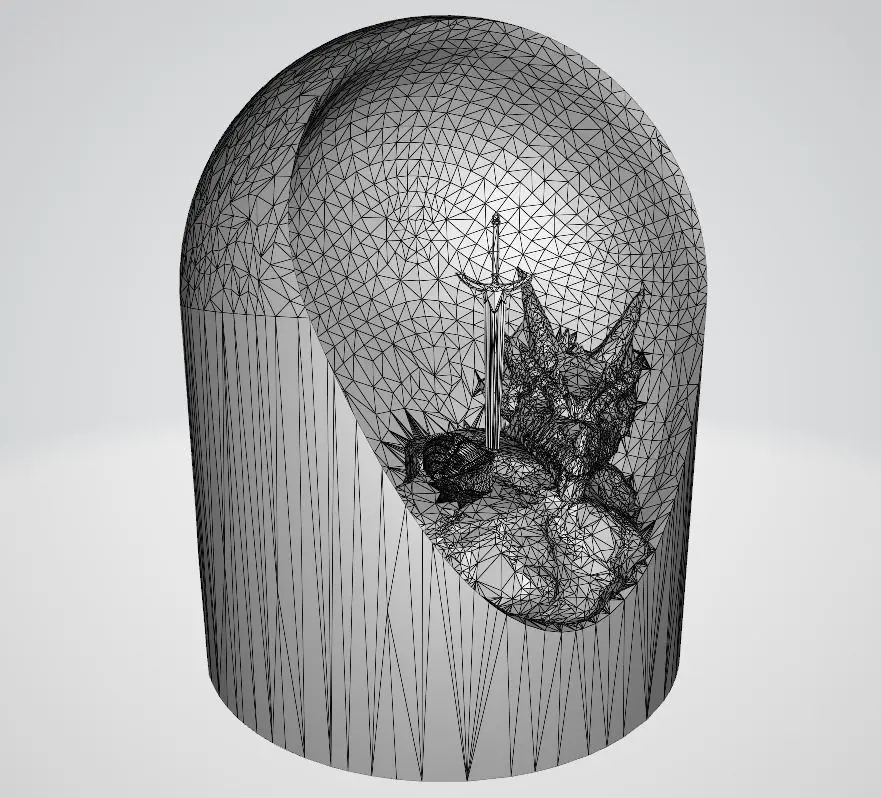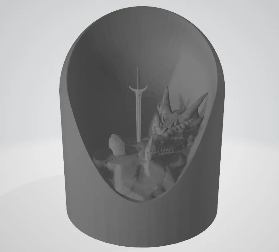 The Large version is easily put together. Everything just slides together and you're done. Designed to be printed with Resin printers but can be printed with FDM printers as well, although I can't promise you'll get the same great details as you would with resin, like the knight helmet and sword grooves. For resin printers, everything has been designed where it doesn't need any supports if printed upright. Same might be possible with FDM printers because the overhangs are very small (Although the arch at the very top might need some). I print the diorama insert piece in clear resin and don't hollow it out. It's a solid piece. I found it looked better that way. Then I print the shell and base in white and spray paint them.