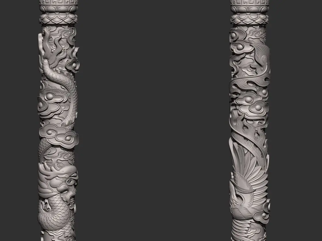 3d model of dragon and phoenix pillars for CNC Router Carving or 3d printer.OBJ,STL format.