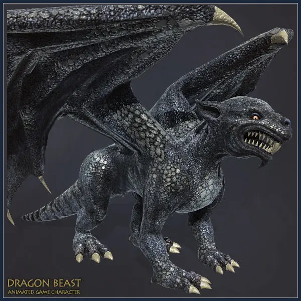 Low polygonal game ready animated model of dragon in 3D Max file version 2009.