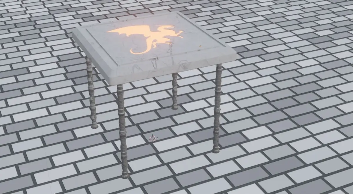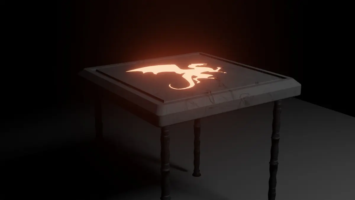4 legged table top. Dragon shaped and boundary lines carved on the table. You can have the top see through or you can put any color object in there suited to your scene. Enjoy !