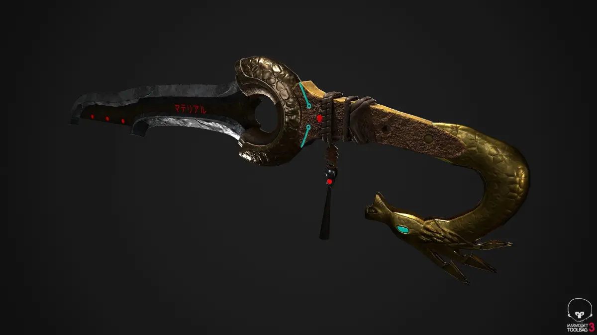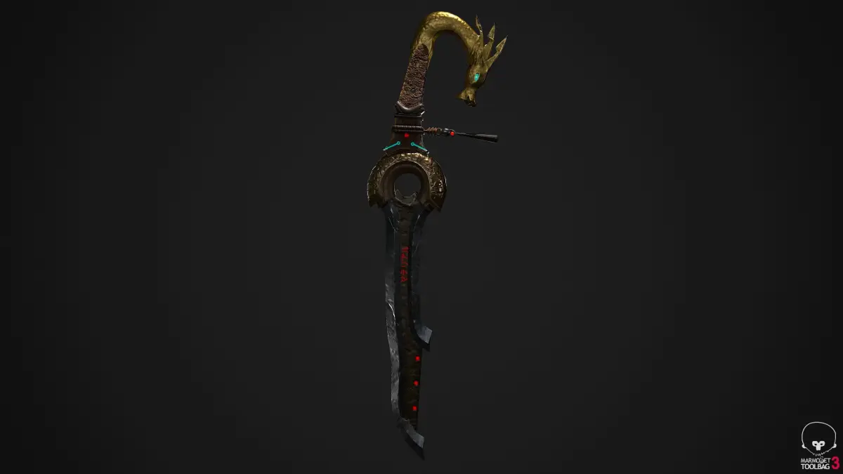 Dragon dagger, conceputual 3d artwork. A low poly model with PBR 4k Texture maps all in one texture set. Can be used for game or be used for any short animation film. its about 10700 polygons no ngons are there in the model and a bit triangles are there.