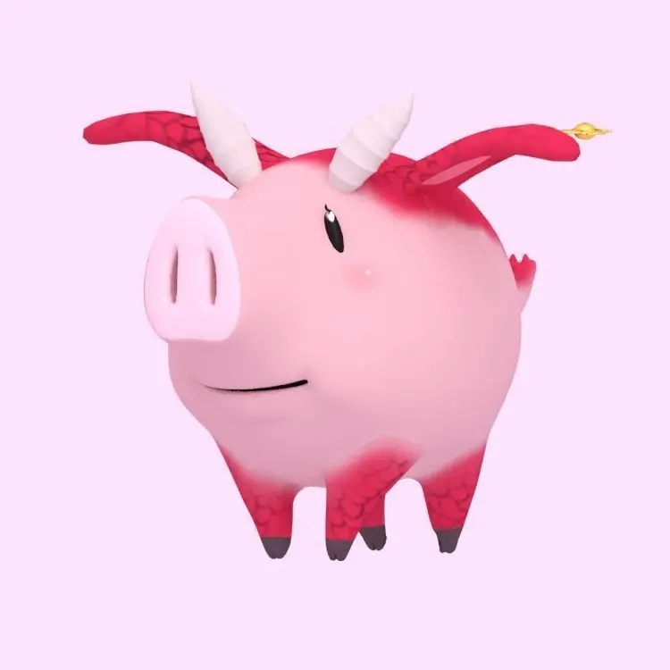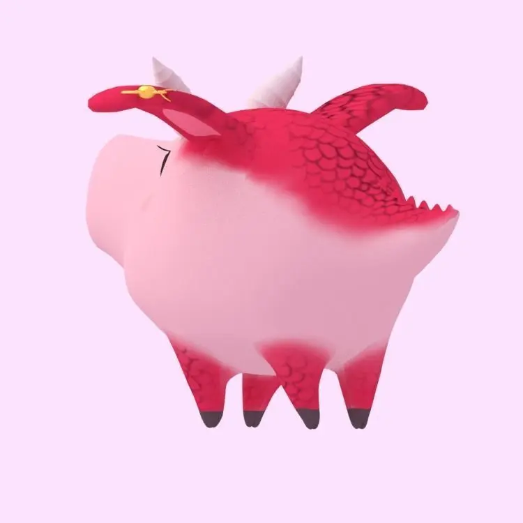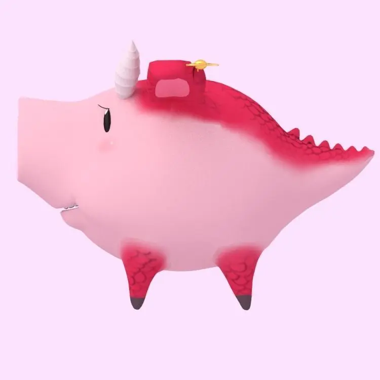 The main meshes are made up of: pigdragon (with shape keys for mouth), eyes (with shape keys), teeth_top, teeth_low, dragonhorn, baloreye