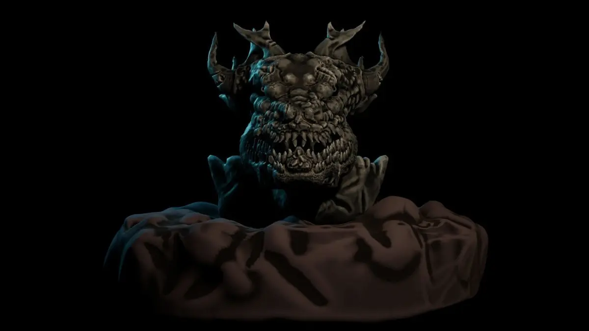 High polly sculpt, all of texturing that there is generated via dirty vertex colours.
