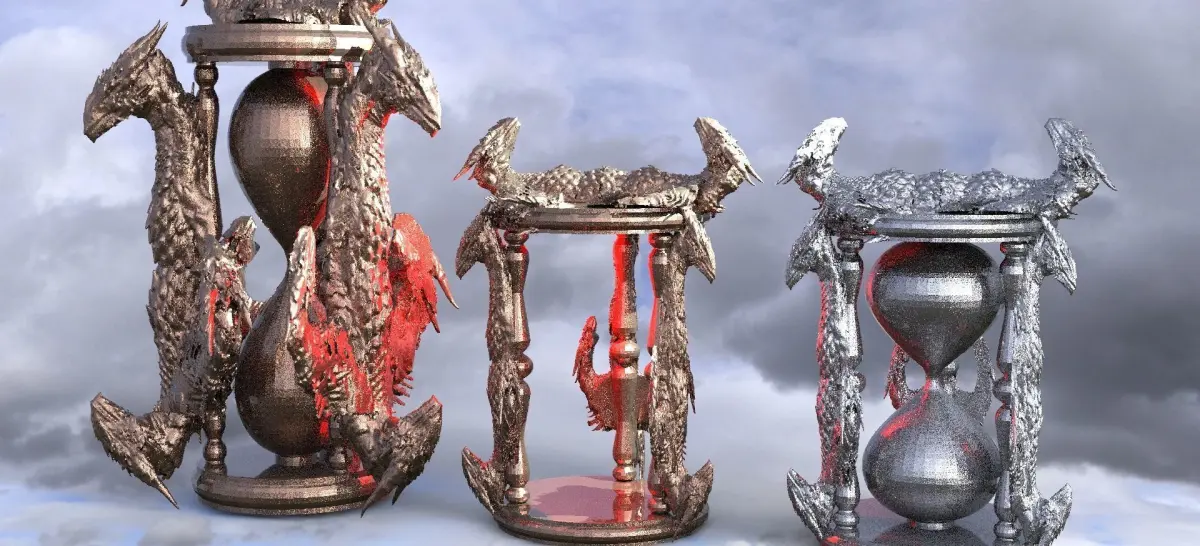 Dragon hourglass 3 versions 3D! UV map except on dragons.