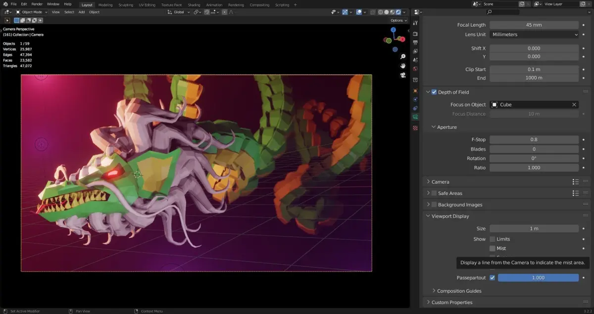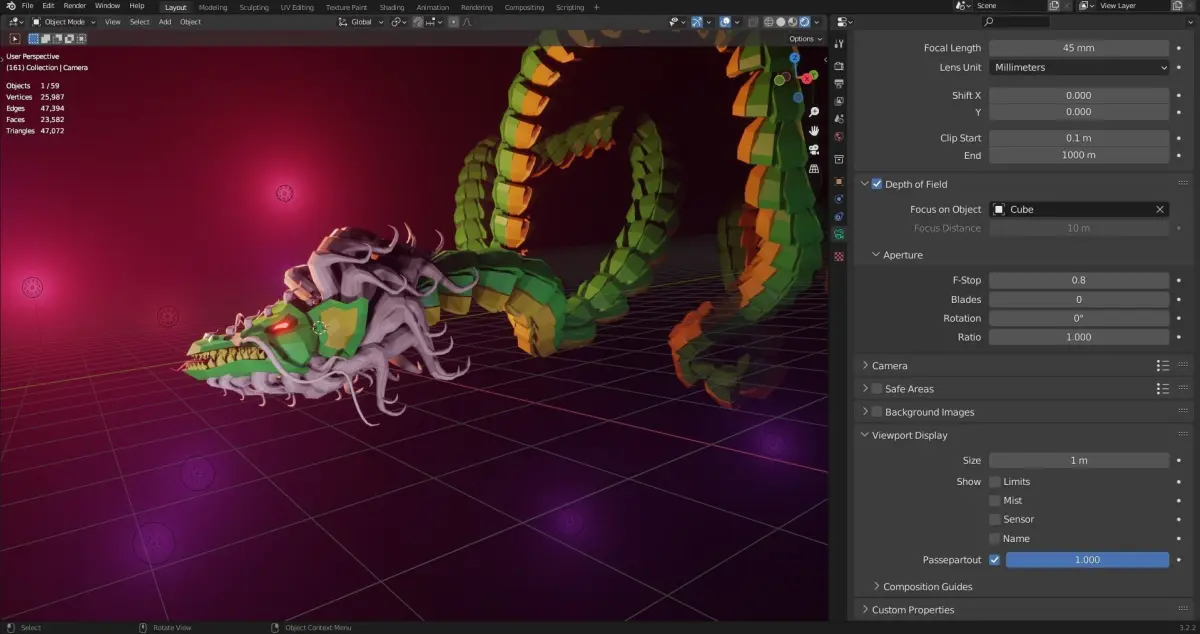 Blender Editable File:you can customize your own dragon using the curve as shown in the youtube video. Change colors (changing colors it's just 1 clic), lighting, fog intensity, etc. works for Cycles and Eevee