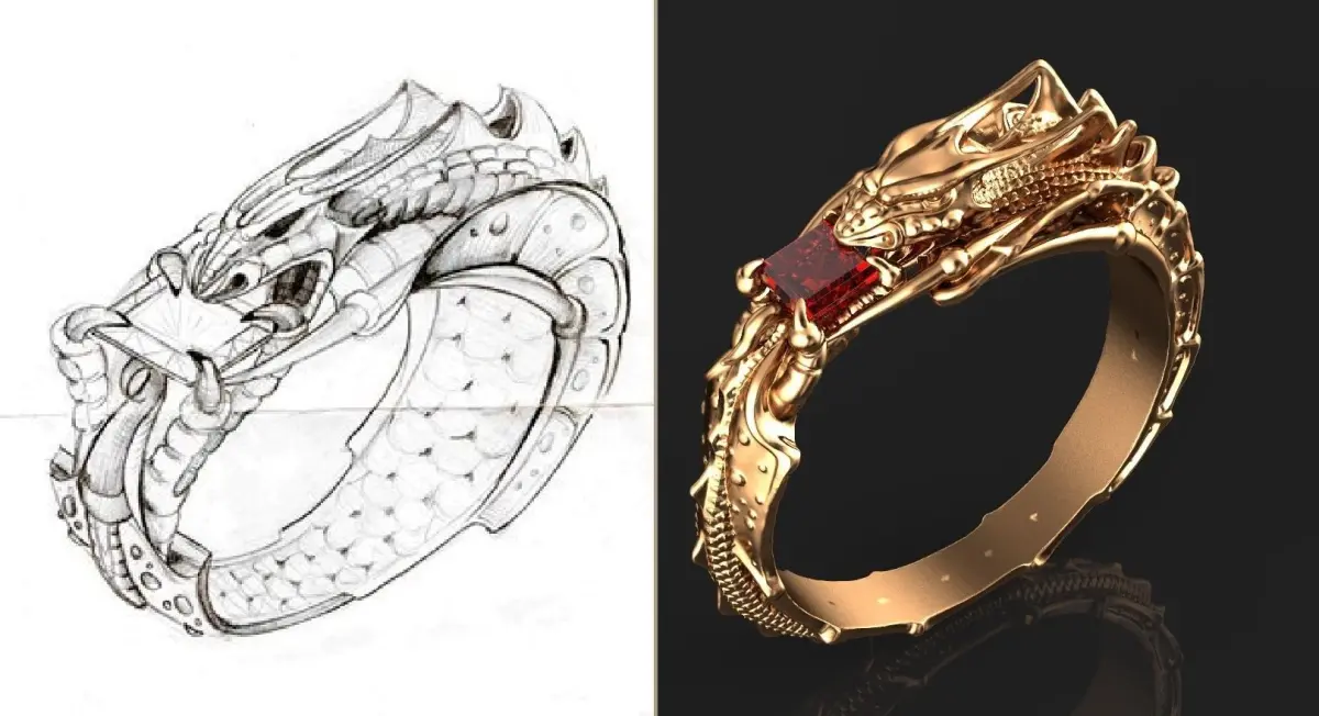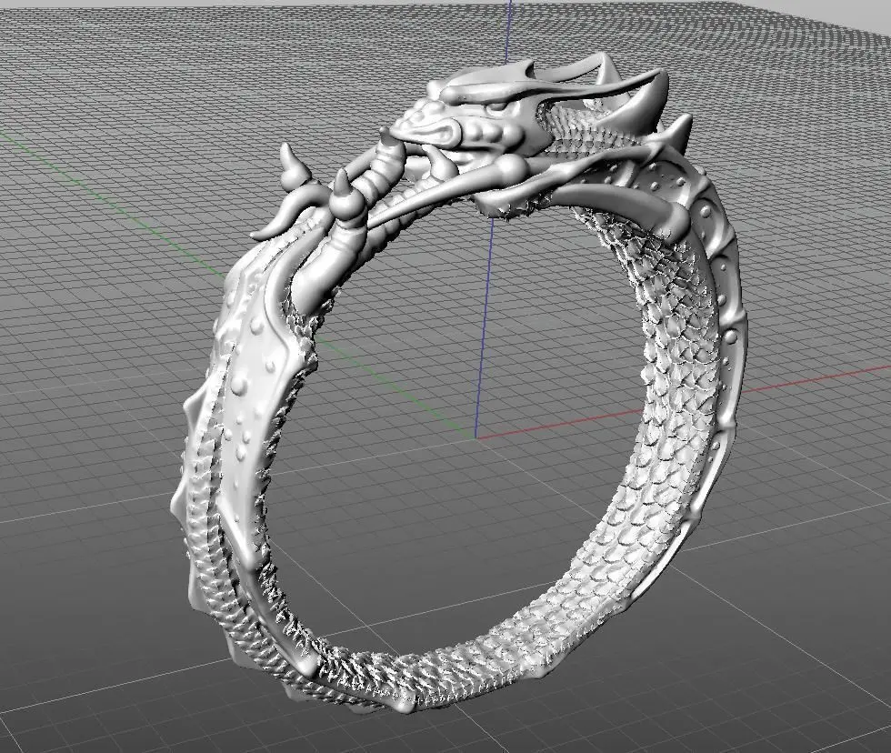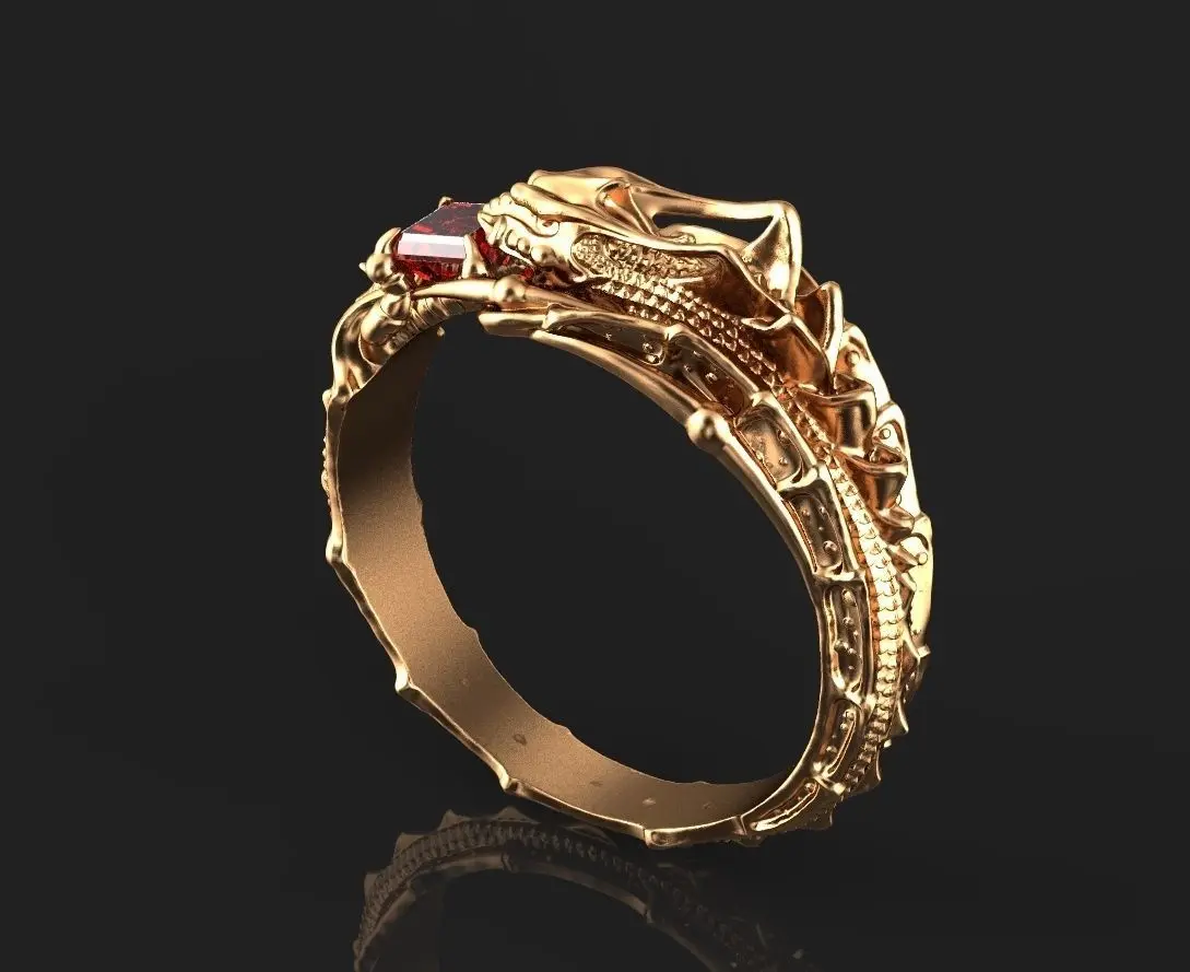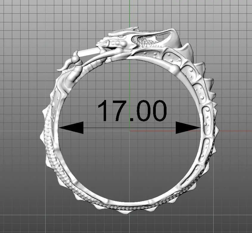Dragon ring, size 17mm, weight in gold 585 3.72, in silver 925 2.95g, stone square 3 by 3mm. Two files are available, the first with a smooth surface inside, the second with scales inside.