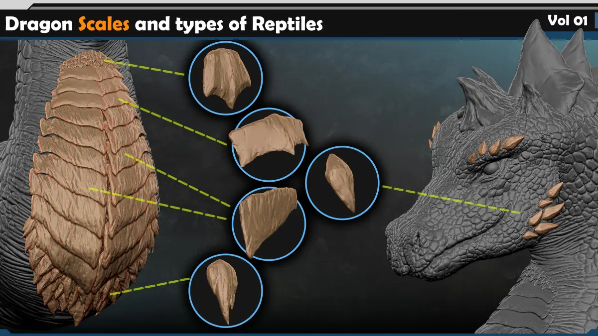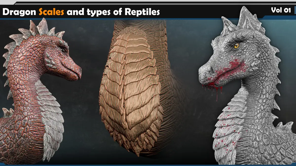 This Product include 40 Dragon scales-types of reptiles Vol 01Compatible with all 3D software.